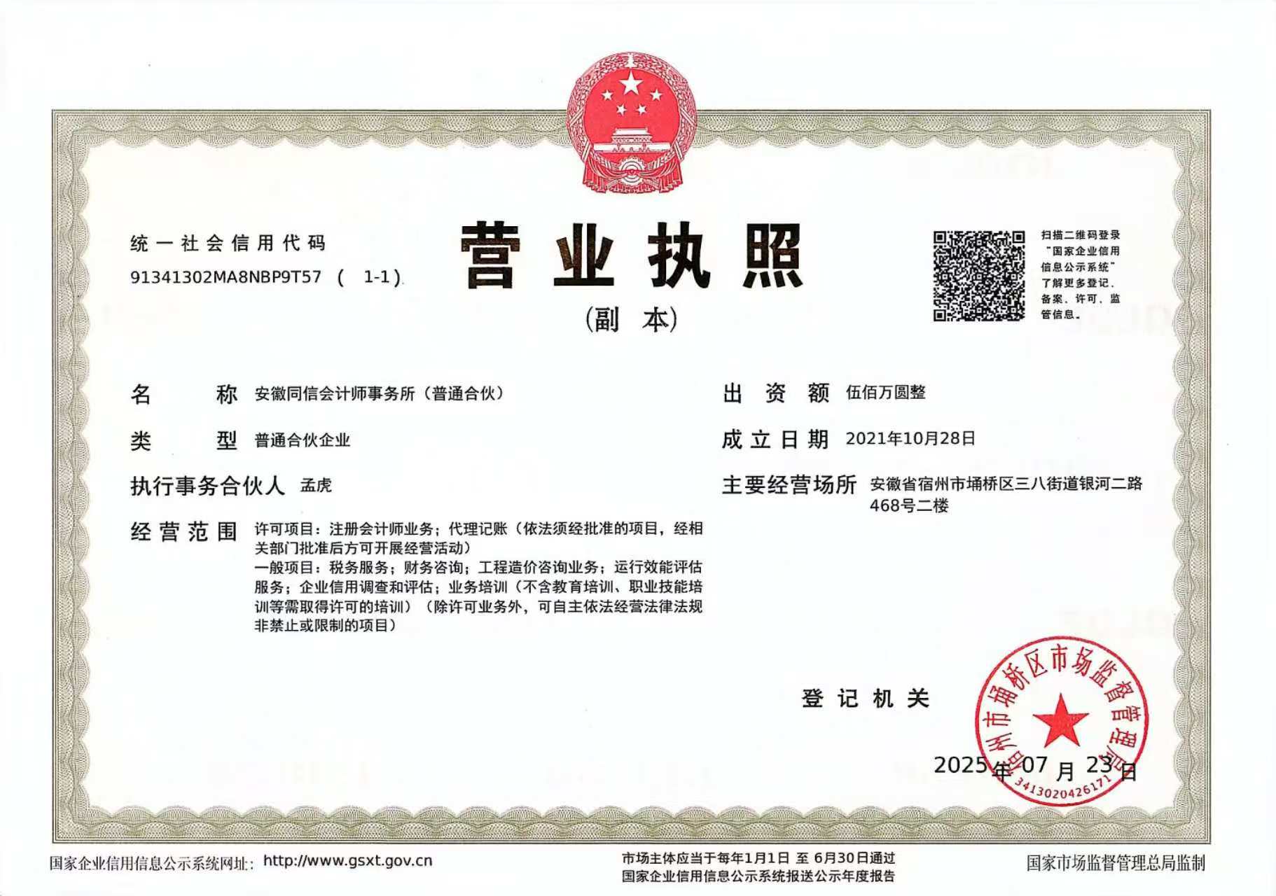 供应商名称:安徽同信会计师事务所(普通合伙)