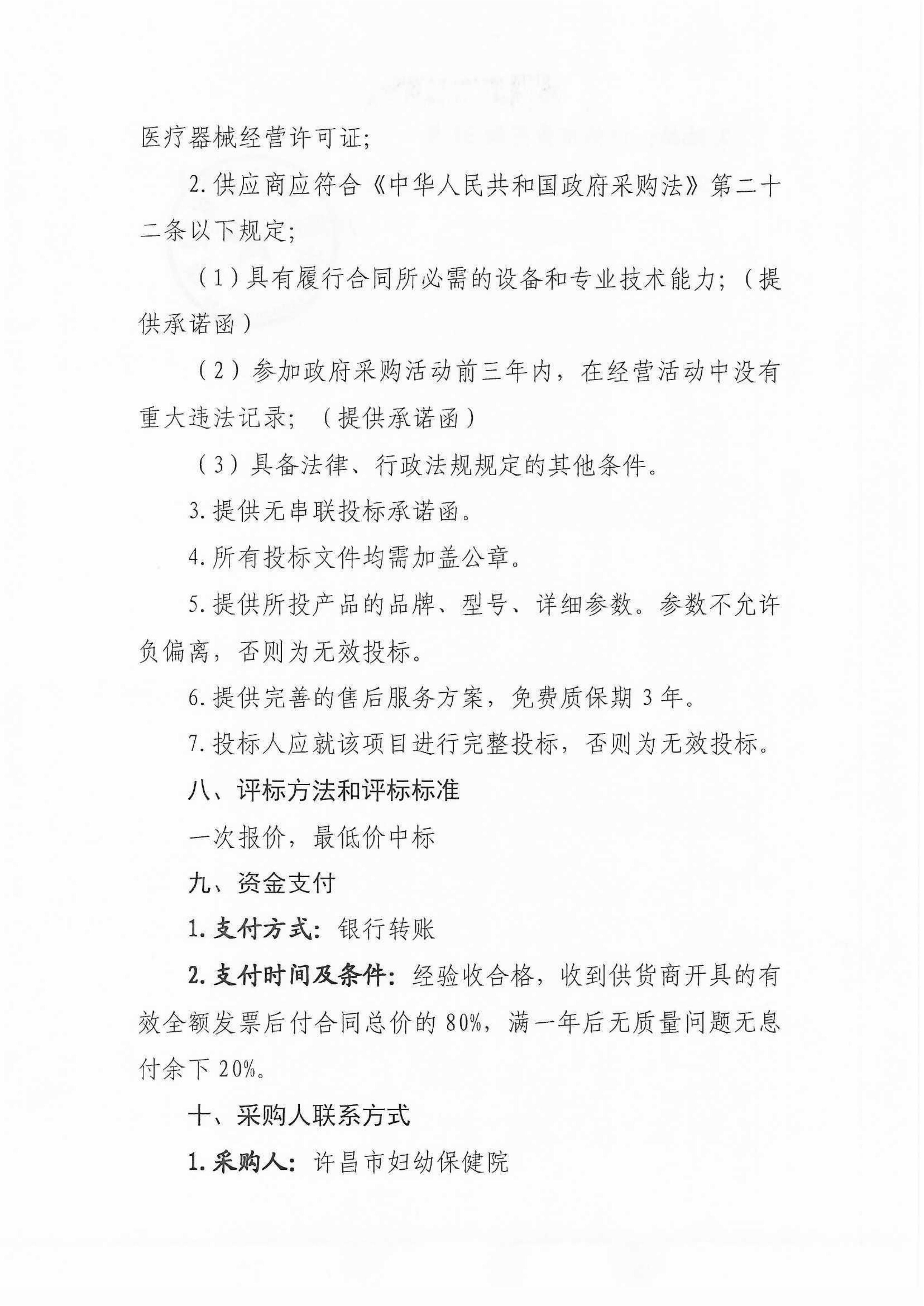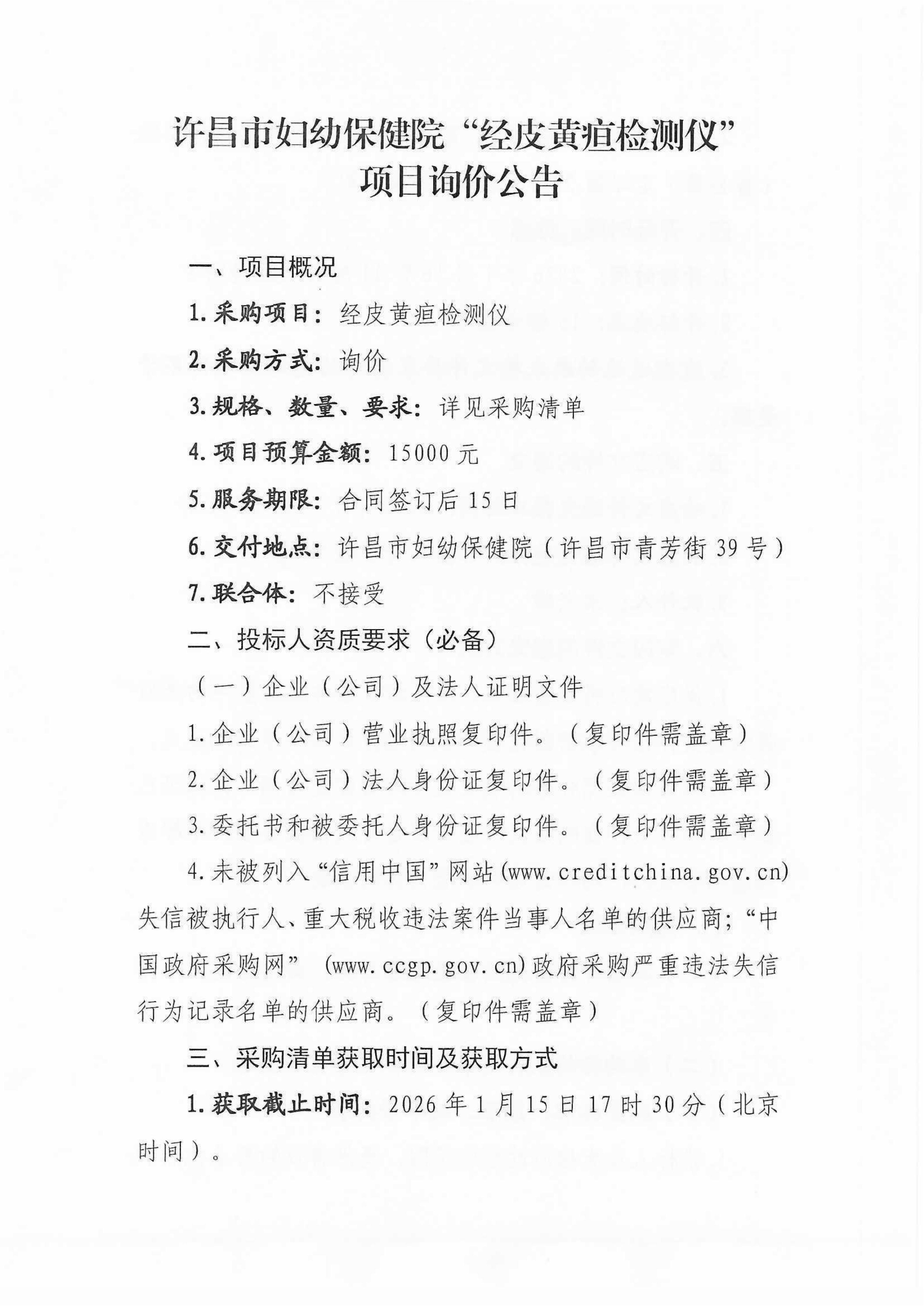 许昌市妇幼保健院“经皮黄疸检测仪”项目询价公告