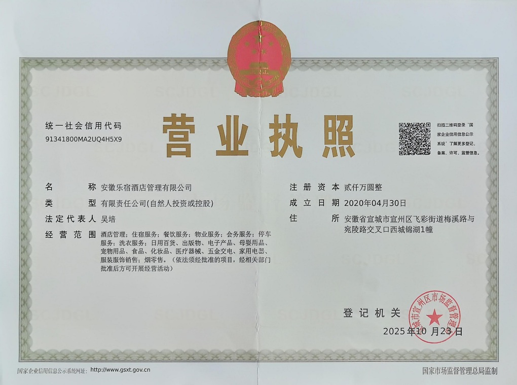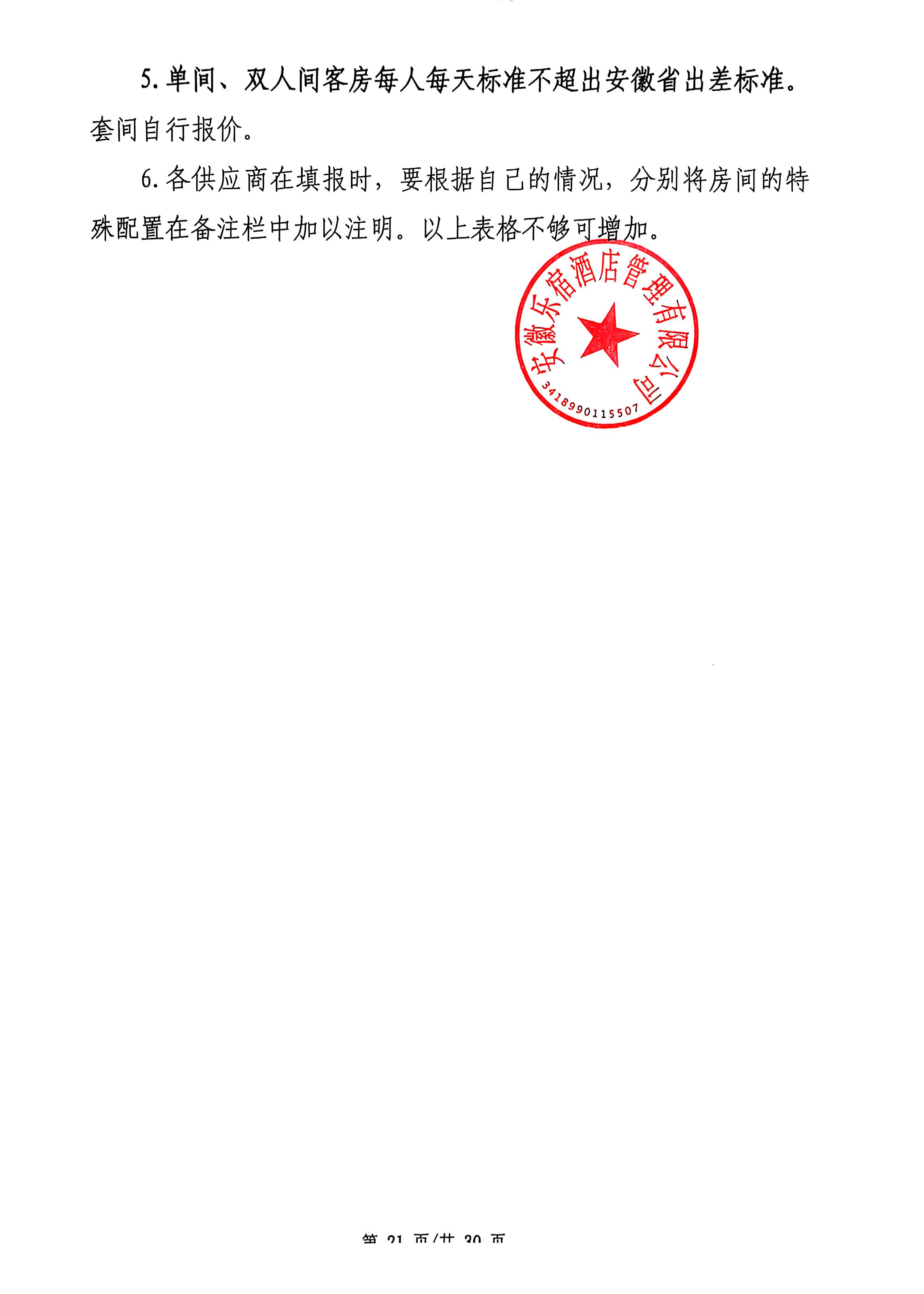 安徽乐宿酒店管理有限公司入围2025-2026年安徽省党政机关会议场所保障服务开放式框架协议采购方案的结果公告