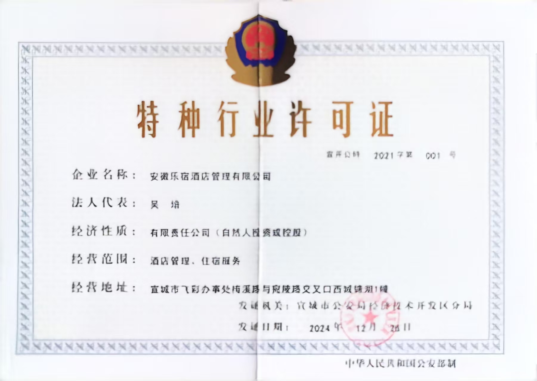 有效期内的《特种行业许可证》:特征行业许可证.***