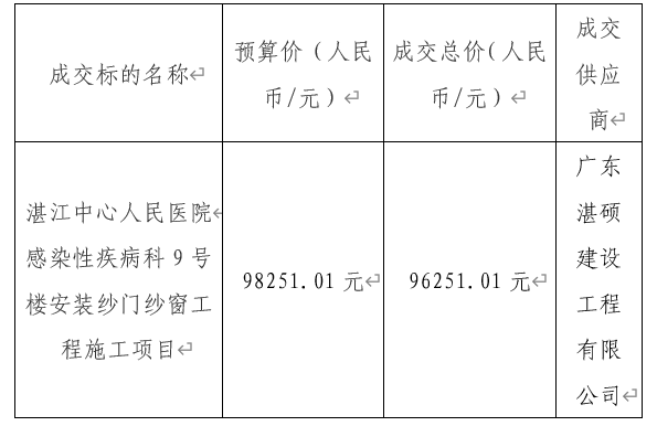 湛江中心人民医院感染性疾病科*号楼安装纱门纱窗工程施工项目供应商遴选信息发布成交结果公示湛中心医后勤物资采【****】*号
