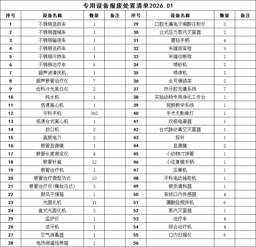 重庆医科大学附属口腔医院报废专用设备一批处置资产处置公告