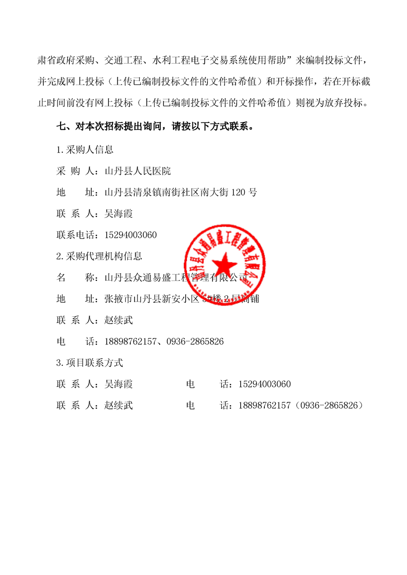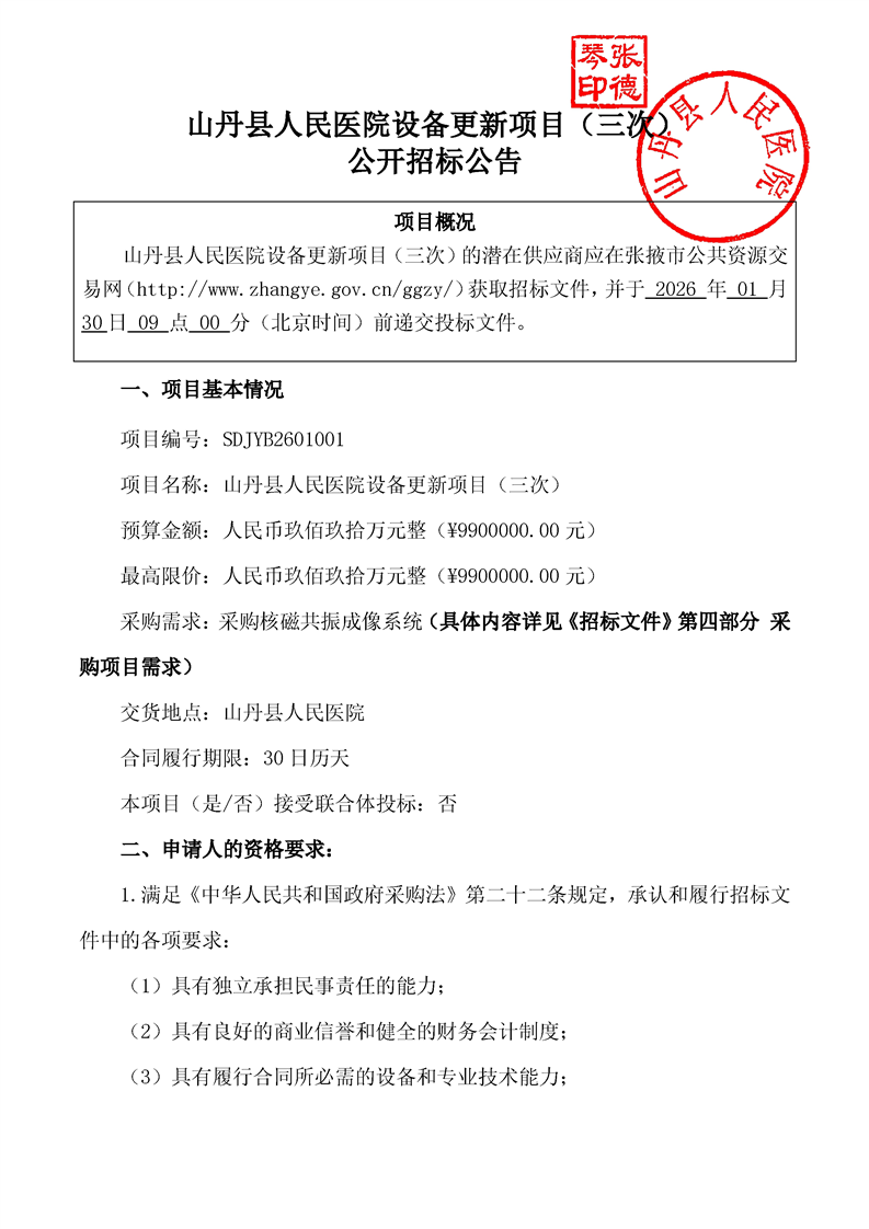 山丹县人民医院设备更新项目(三次)招标公告{type}