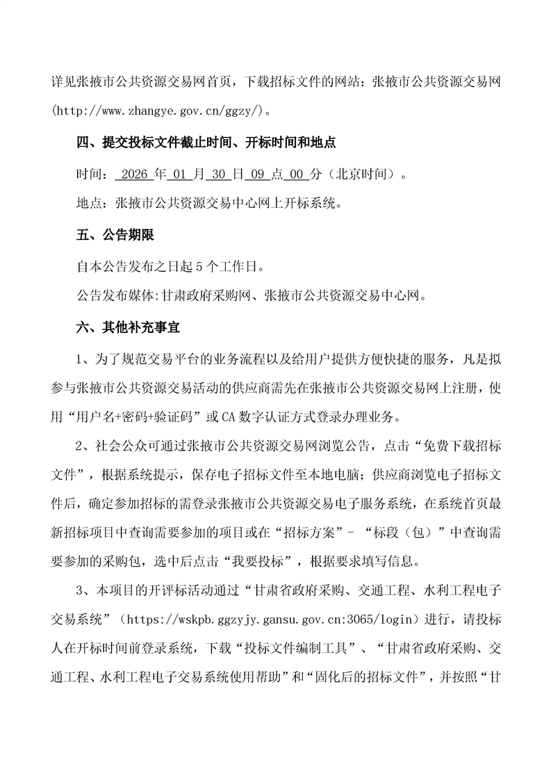 交易平台:张掖市公共资源交易中心山丹县分中心招标/采购项目编号:********************投标登记截止时间:********** **:**:**