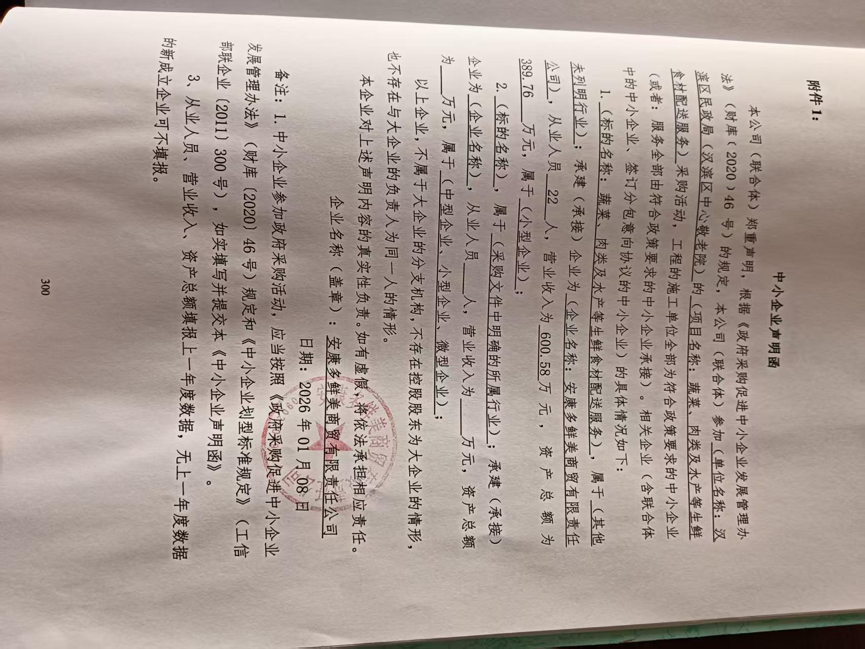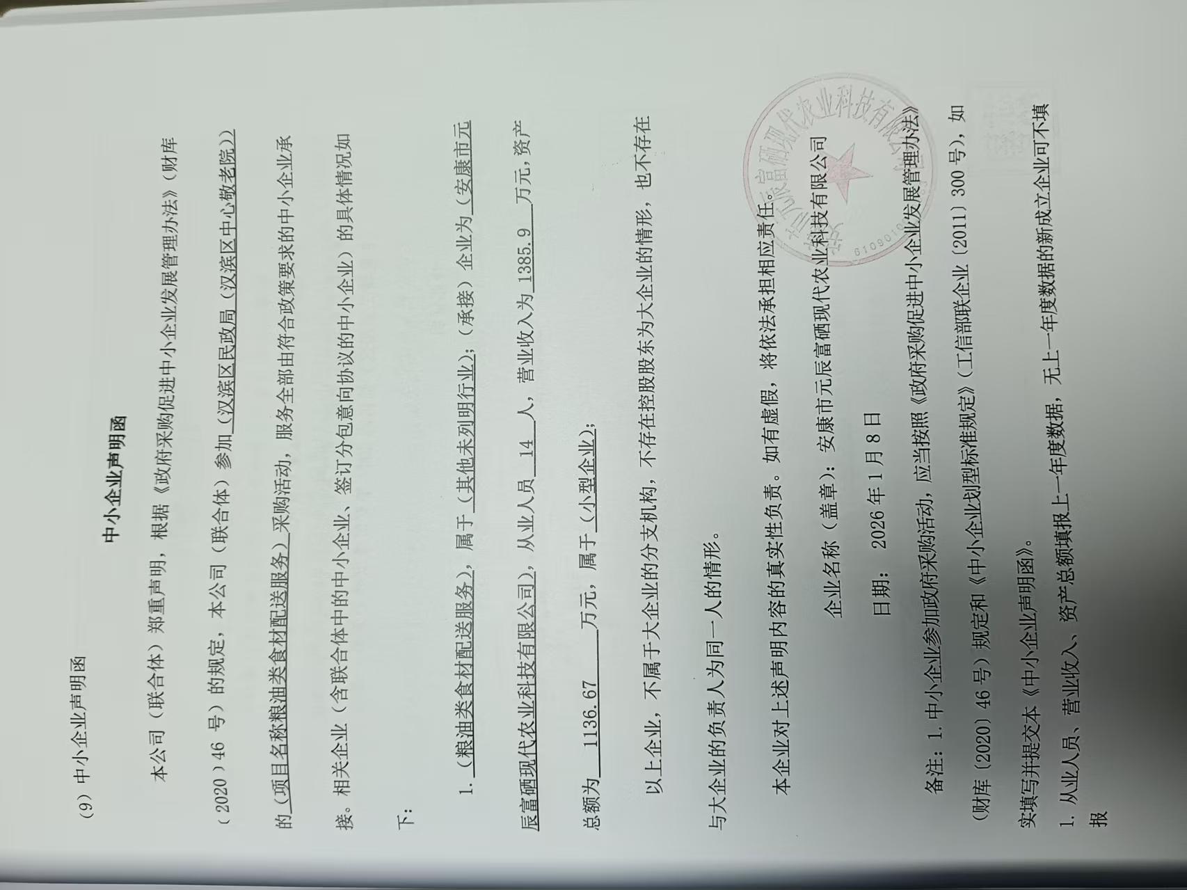 汉滨区中心敬老院2026年蔬菜粮油肉类等食材供应配送服务中标(成交)结果公告