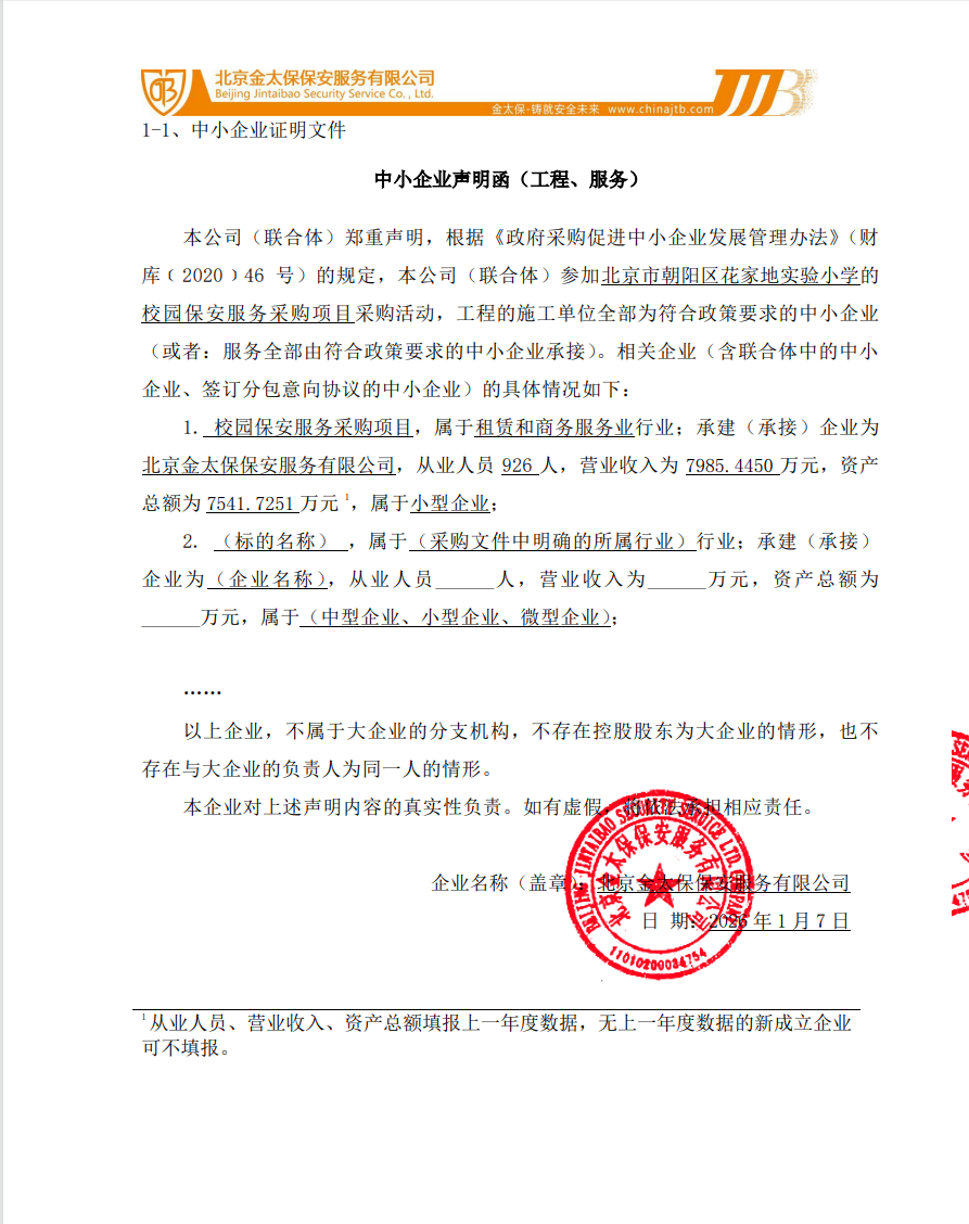 中标成交供应商名称:北京金太保保安服务有限公司