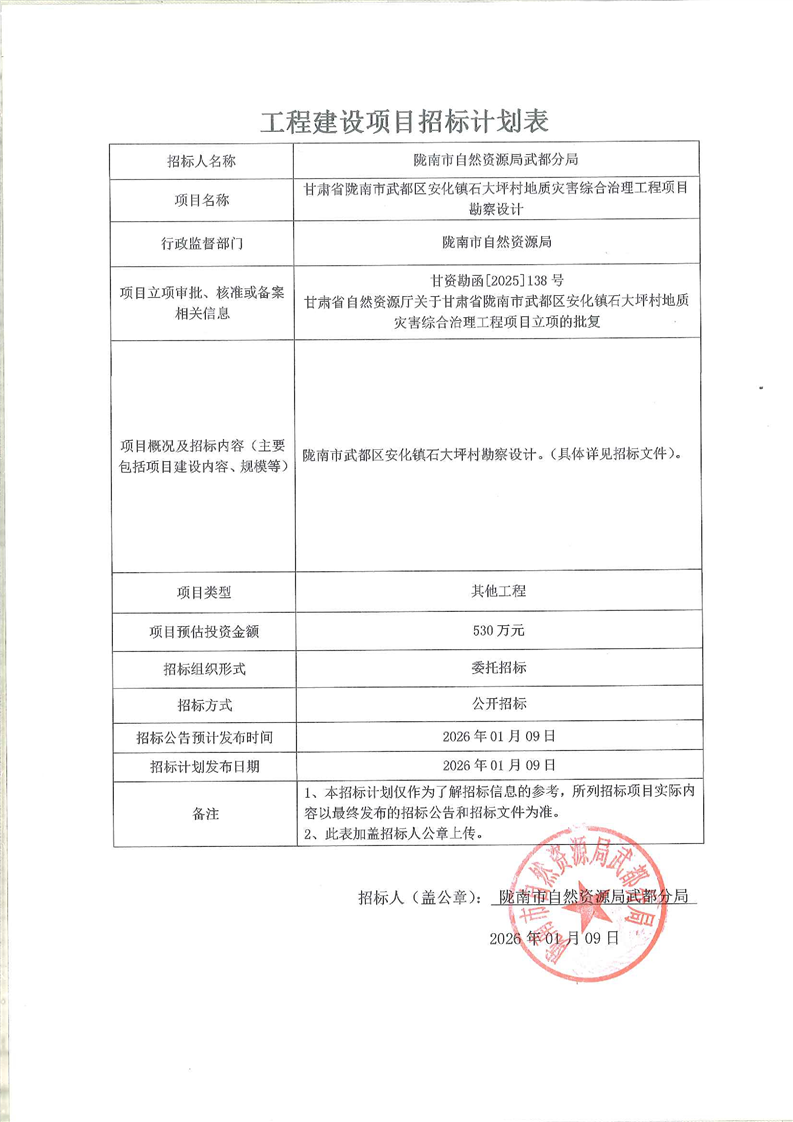 甘肃省陇南市武都区安化镇石大坪村地质灾害综合治理工程项目