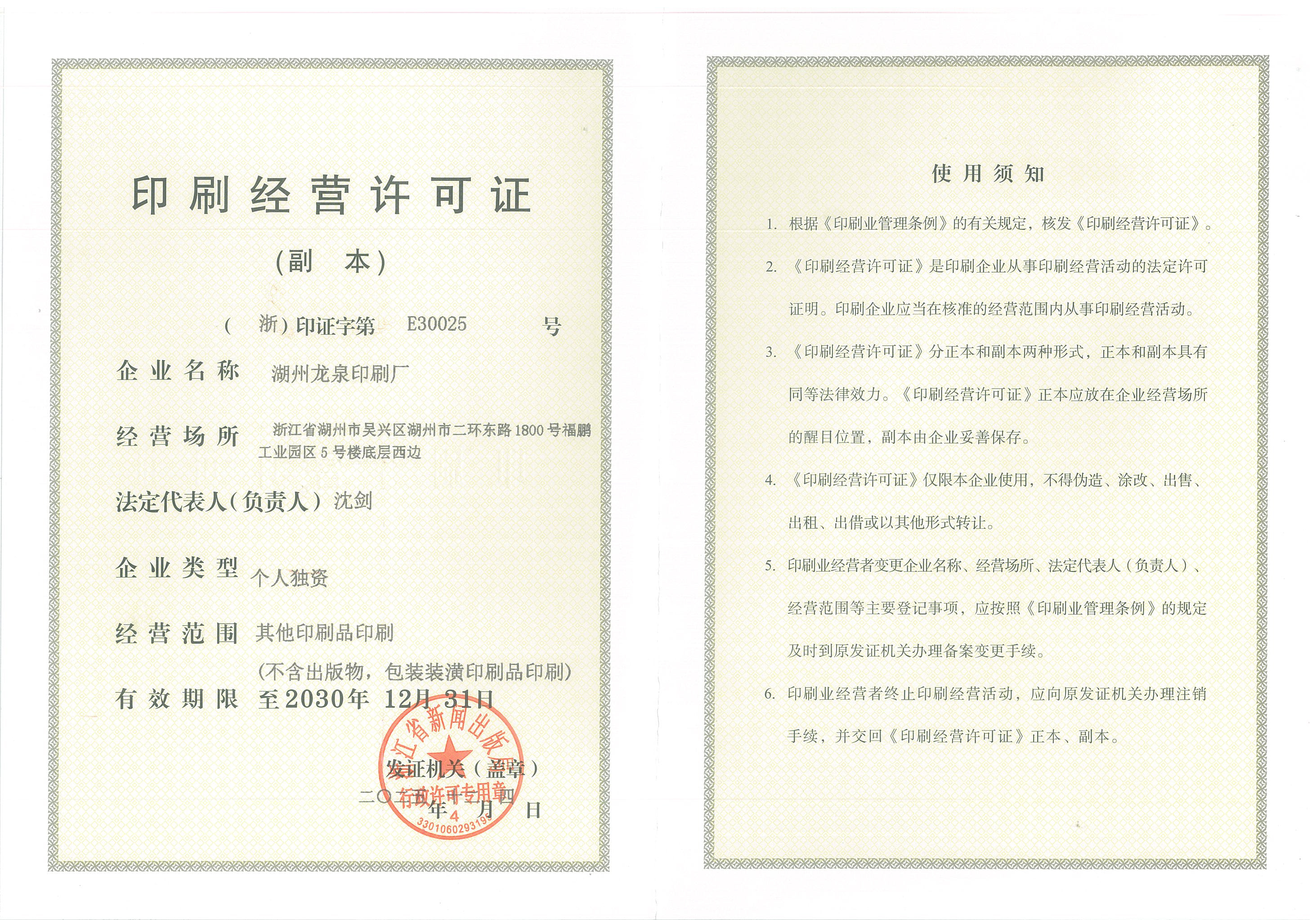 湖州龙泉印刷厂印刷服务(《印刷业管理条例》其他印刷品