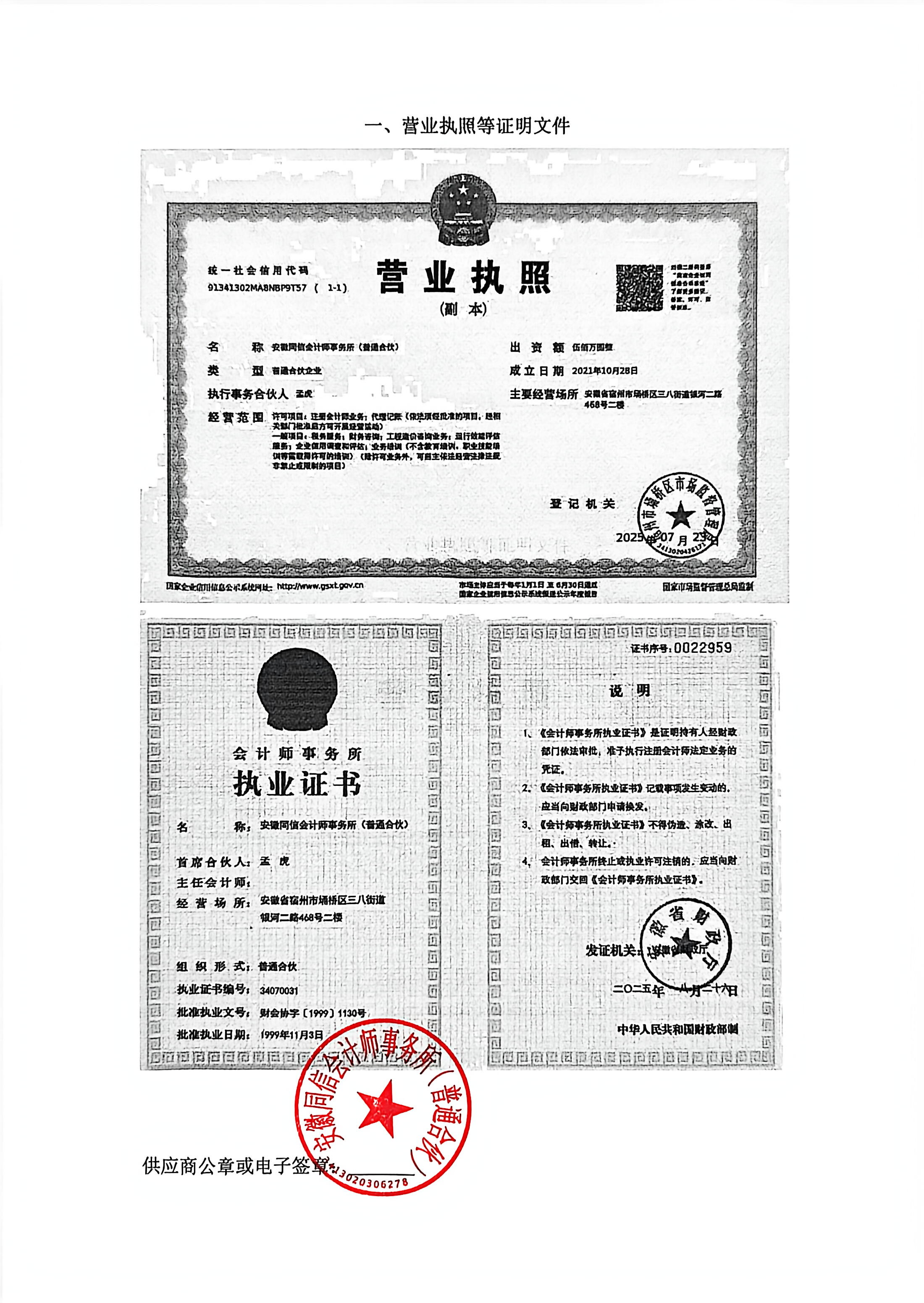 营业执照等证明文件:营业执照+执业证书.***