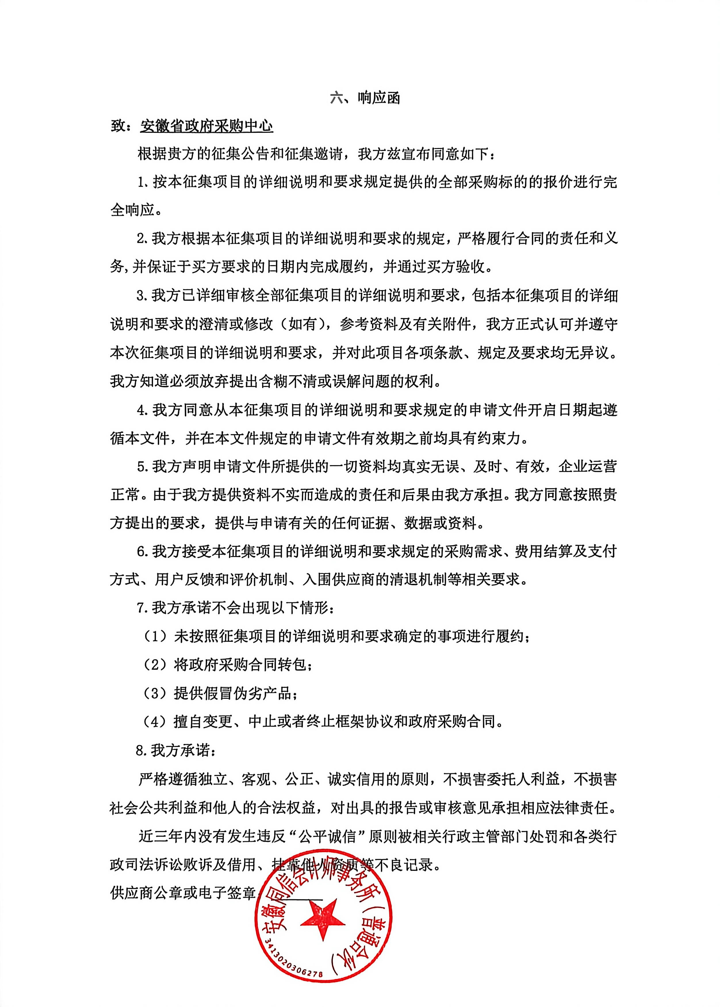 承诺:响应函.***
