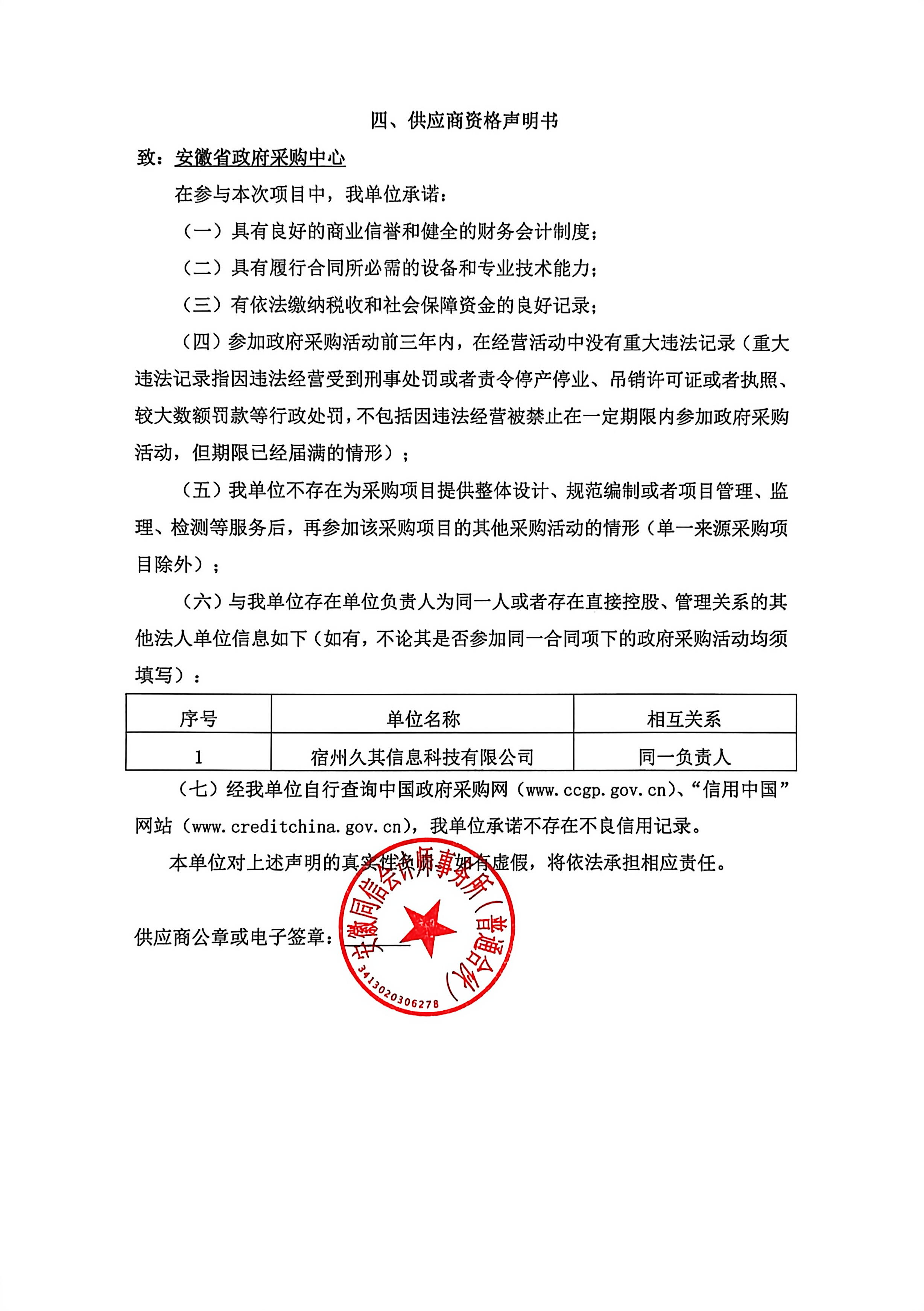 供应商资格声明书:供应商资格声明书.***