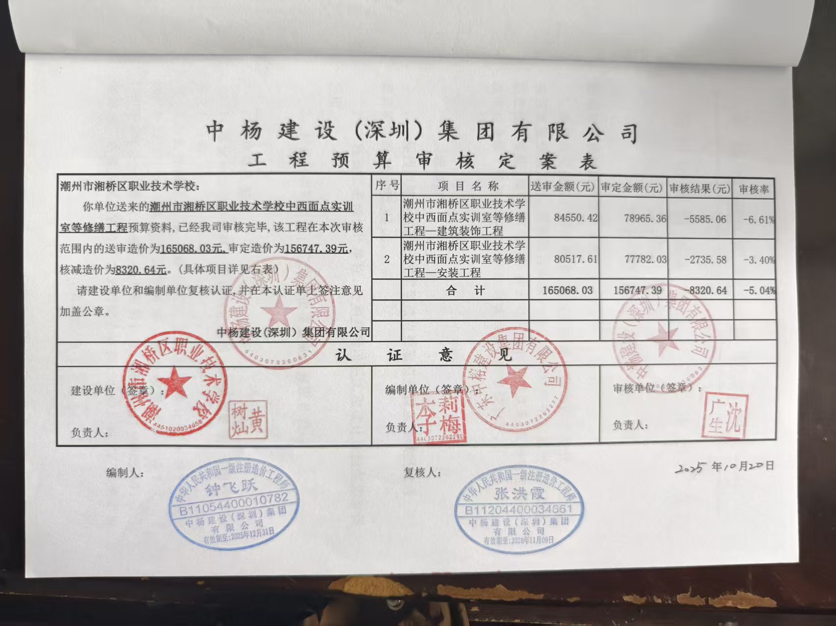 采购潮州市湘桥区职业技术学校中西面点实训室等修缮工程项目***工程预算审核服务