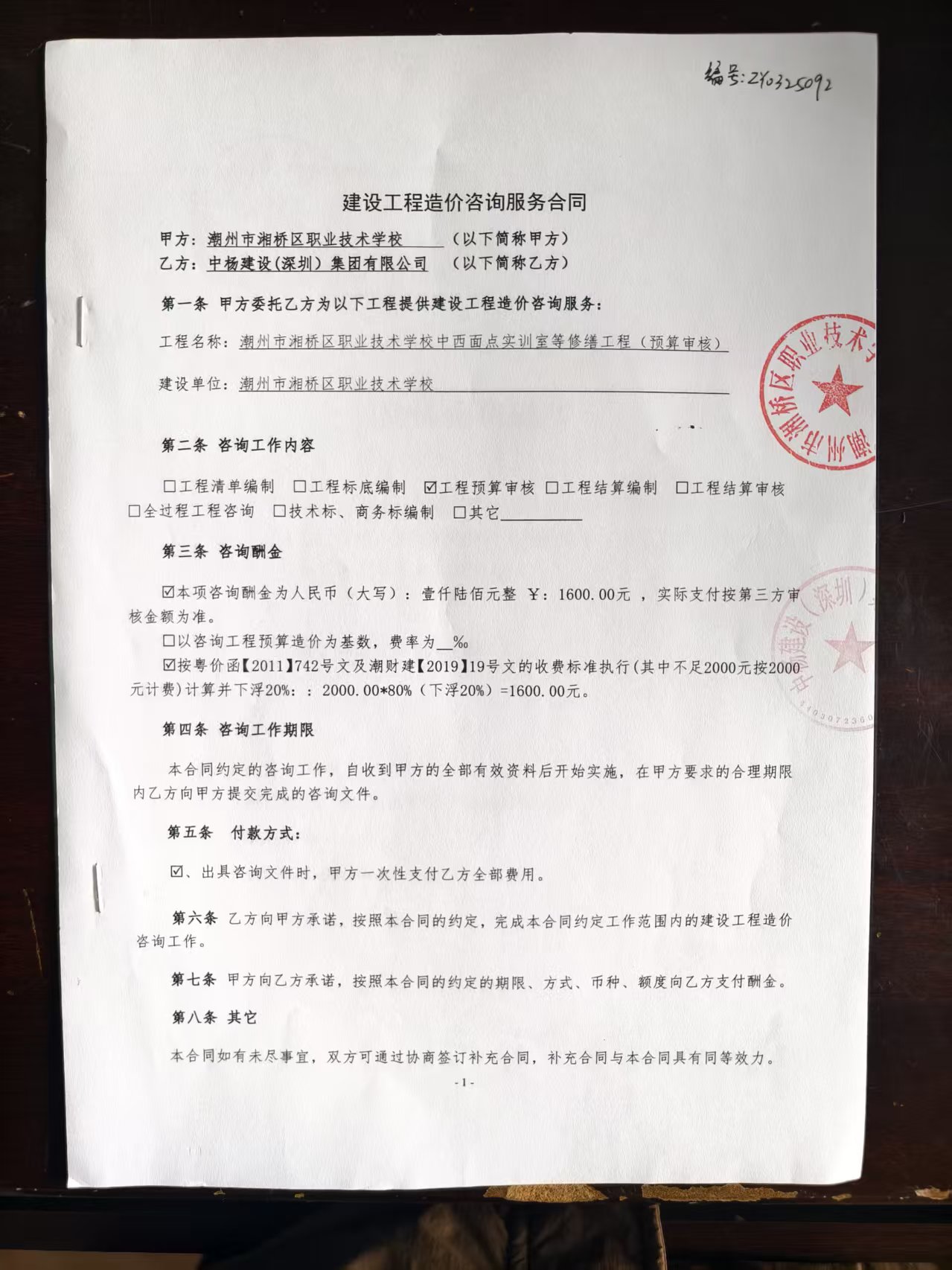 采购潮州市湘桥区职业技术学校中西面点实训室等修缮工程项目---工程预算审核服务合同公开