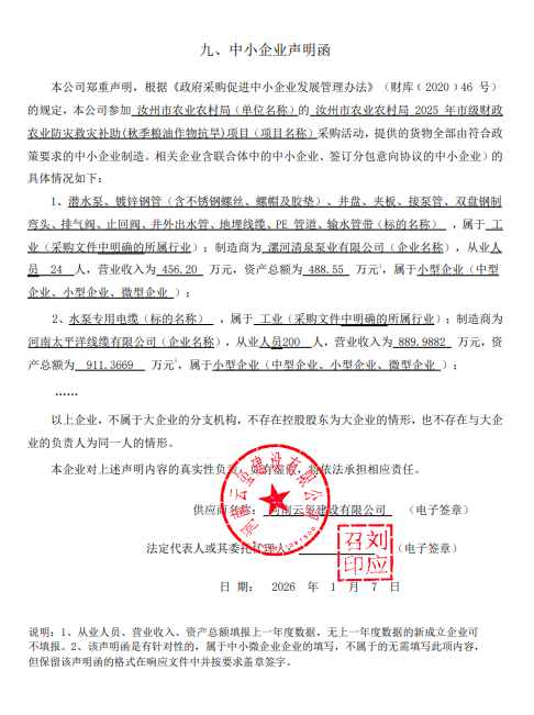 汝州市农业农村局2025年市级财政农业防灾救灾补助(秋季粮油作物抗旱)项目-成交公告