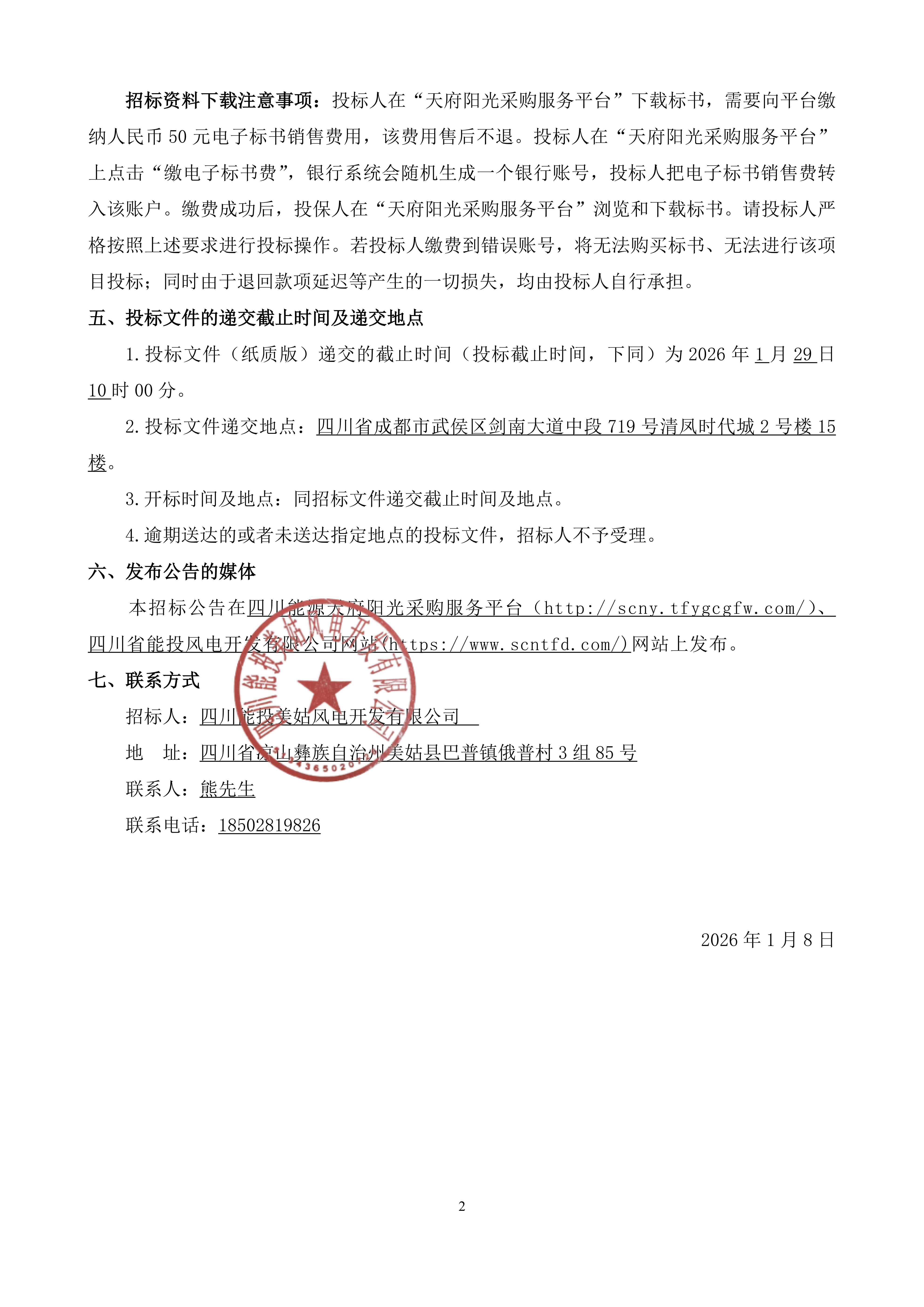 四川能投美姑风电开发有限公司关于凉山美姑四季吉二期风电项目升压站消防设施采购安装工程招标公告