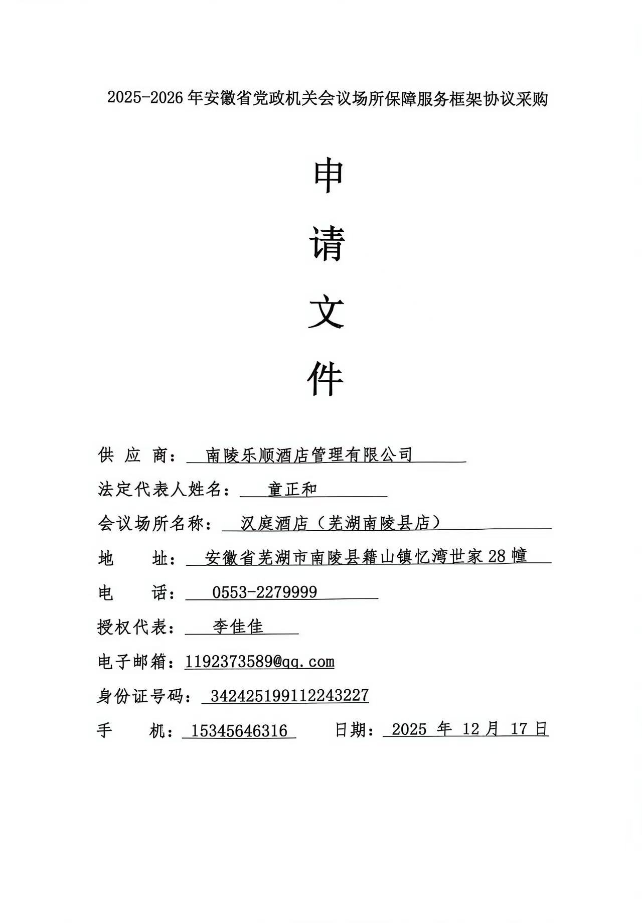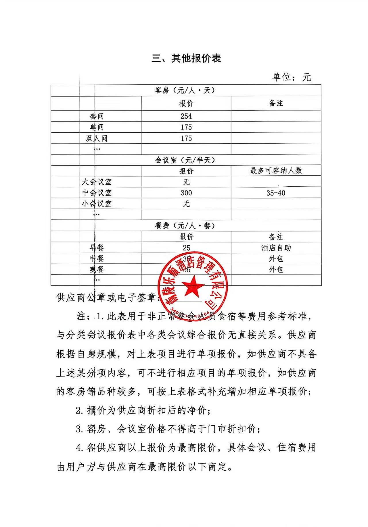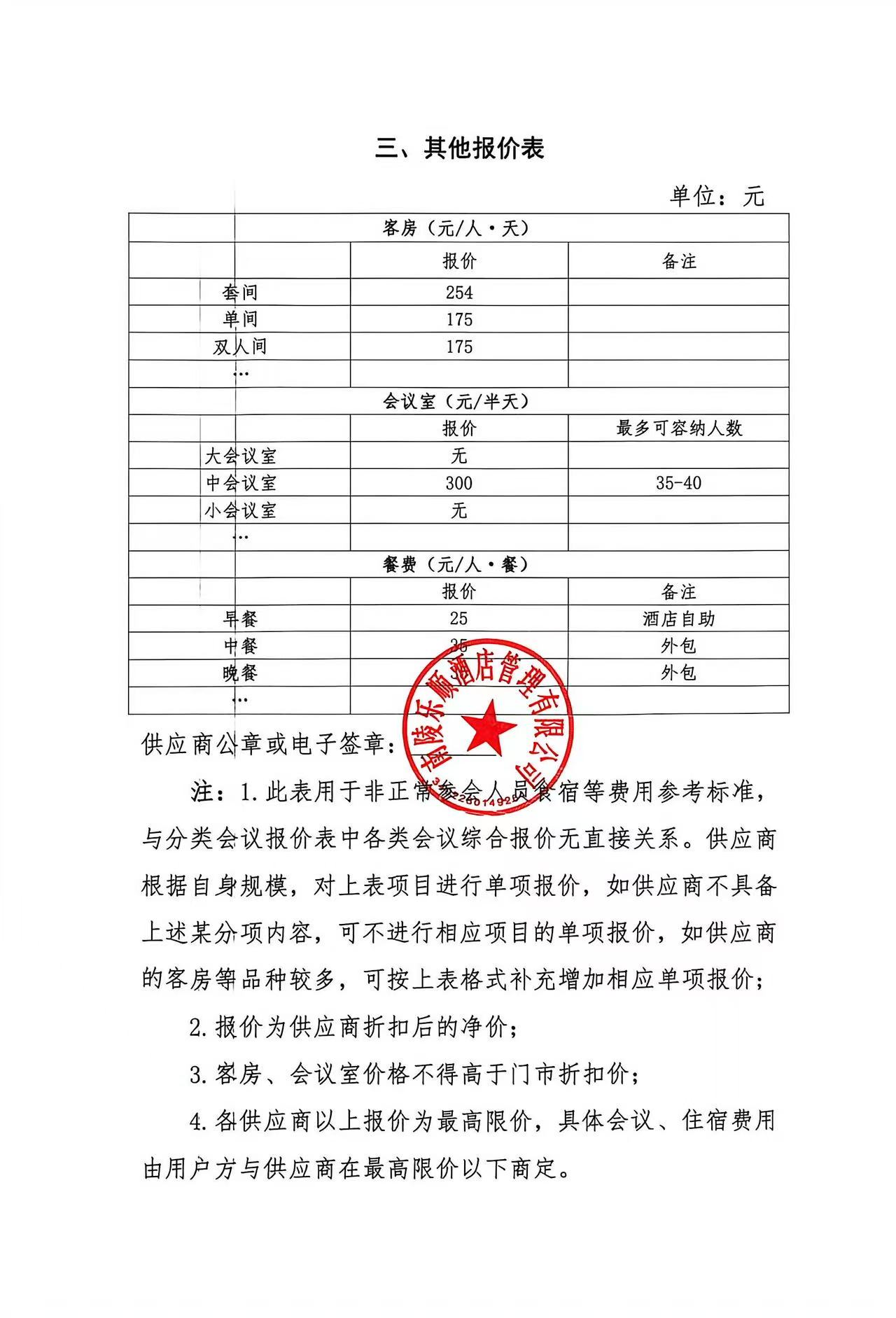 南陵乐顺酒店管理有限公司入围2025-2026年安徽省党政机关会议场所保障服务开放式框架协议采购方案的结果公告