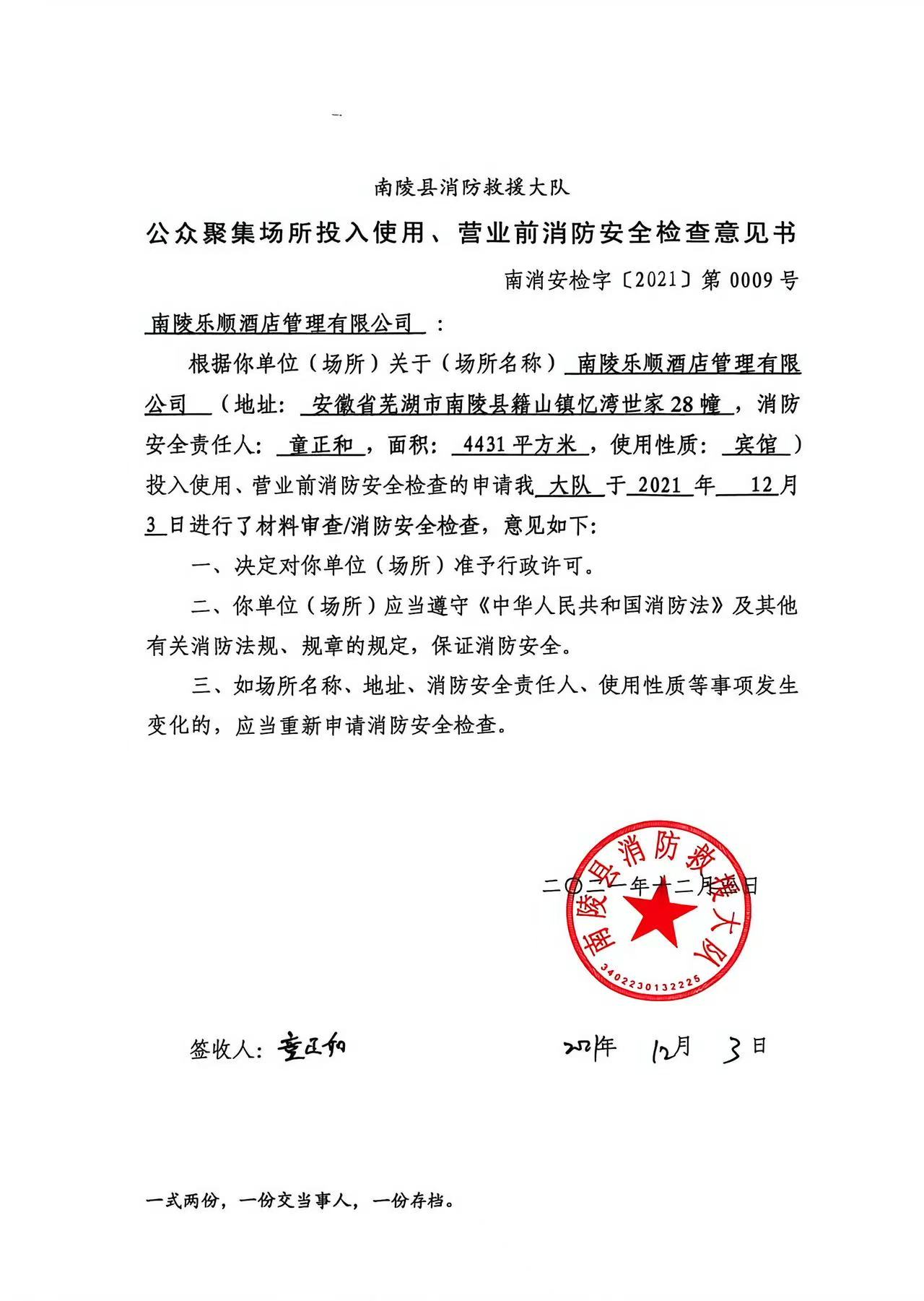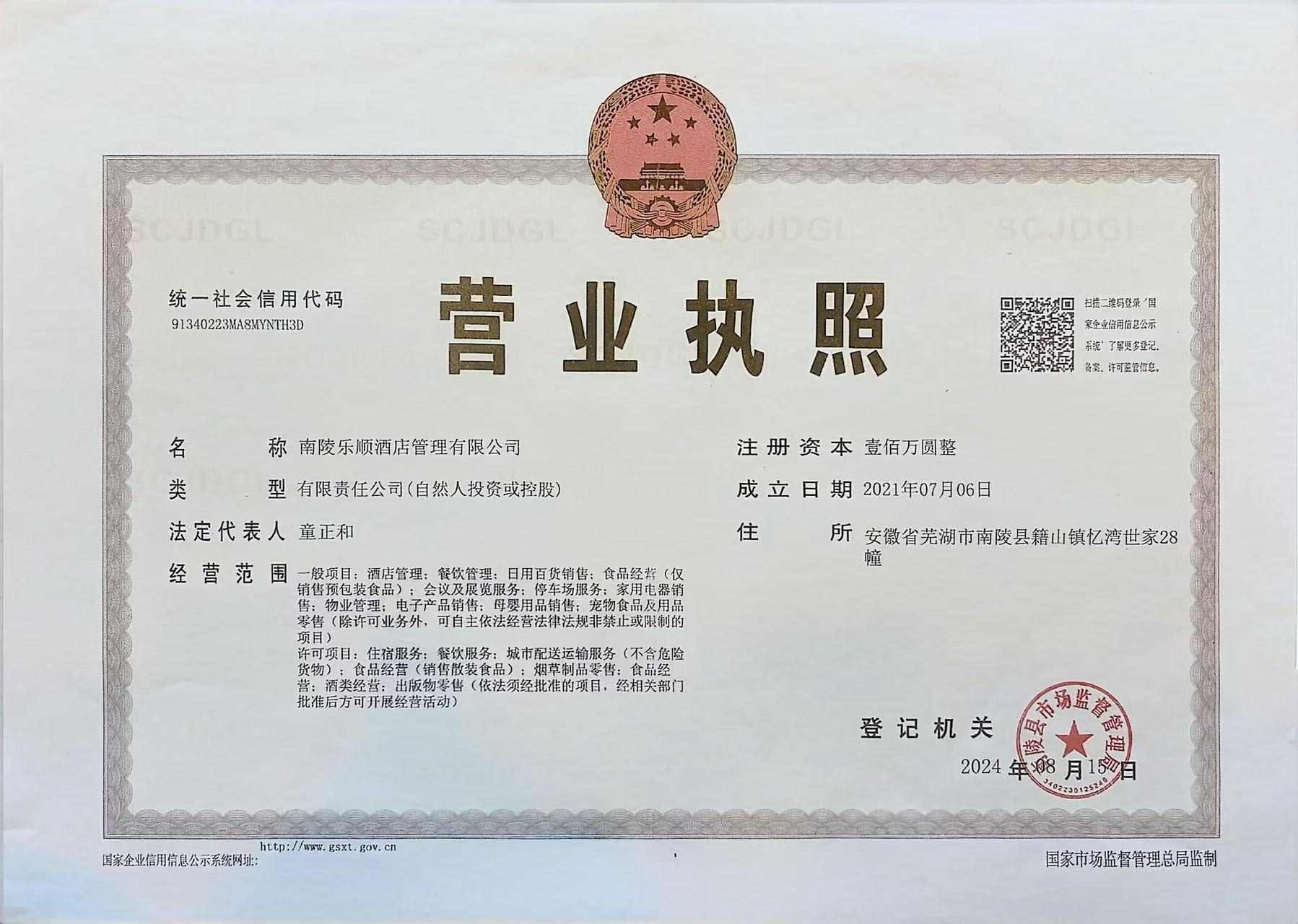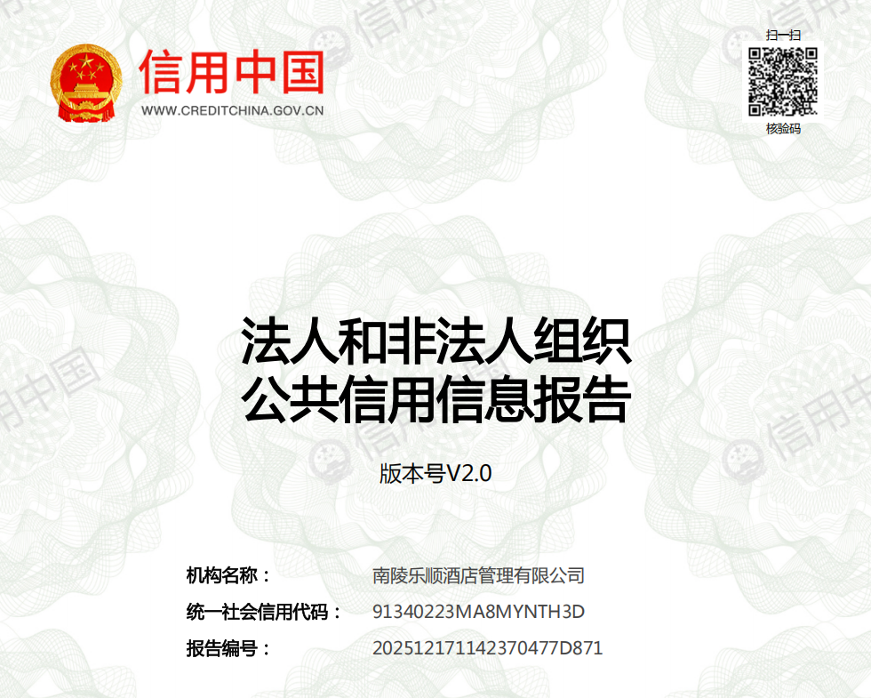 南陵乐顺酒店管理有限公司入围2025-2026年安徽省党政机关会议场所保障服务开放式框架协议采购方案的结果公告