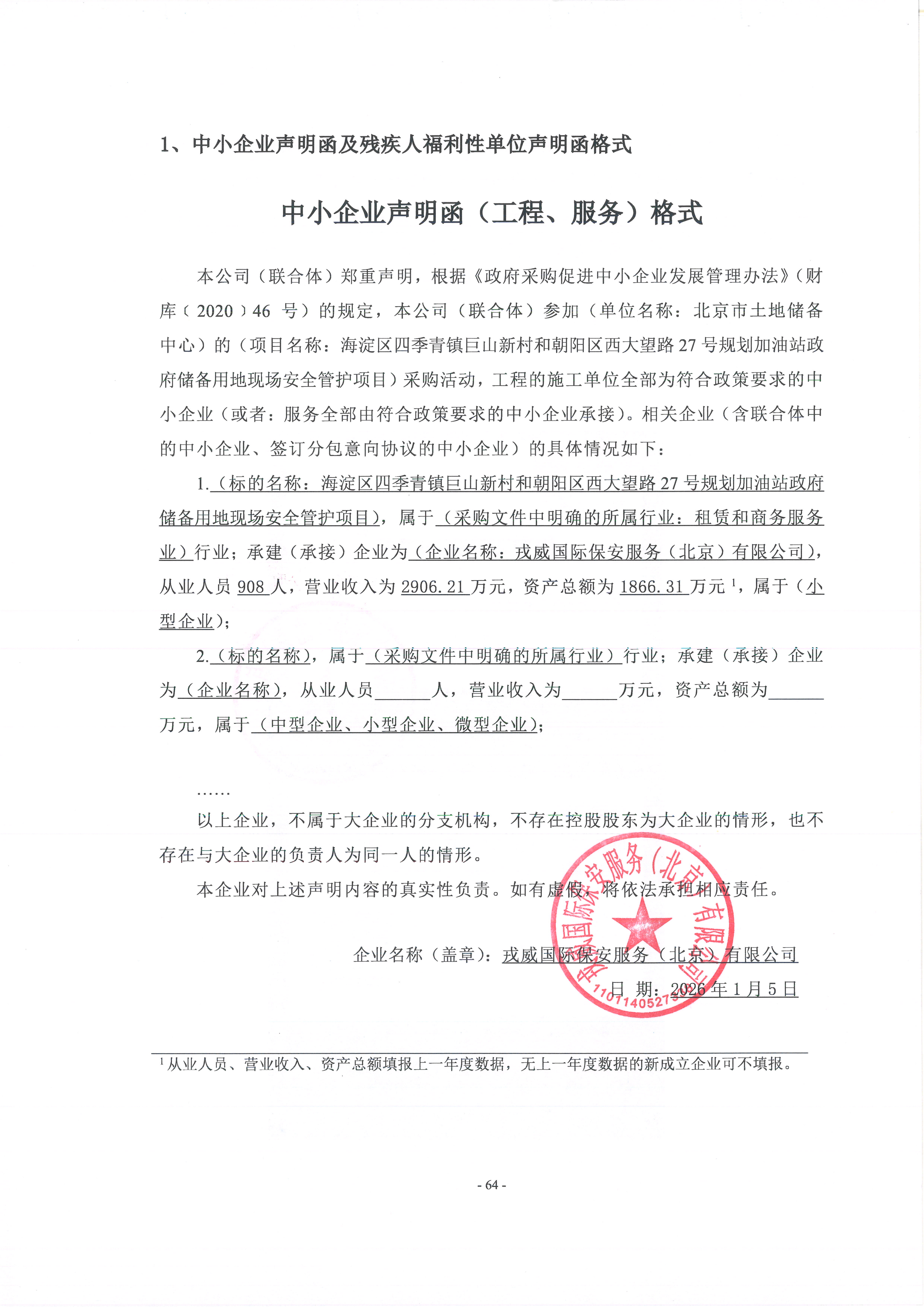 二、项目名称:海淀区四季青镇巨山新村和朝阳区西大望路**号规划加油站政府储备用地现场安全管护项目