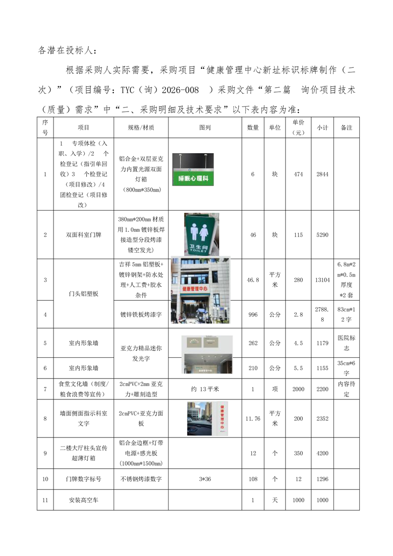 “健康管理中心新址标识标牌制作(二次)”补遗公告
