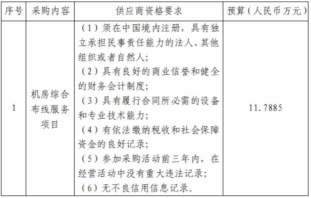 一、采购项目名称:机房综合布线服务项目