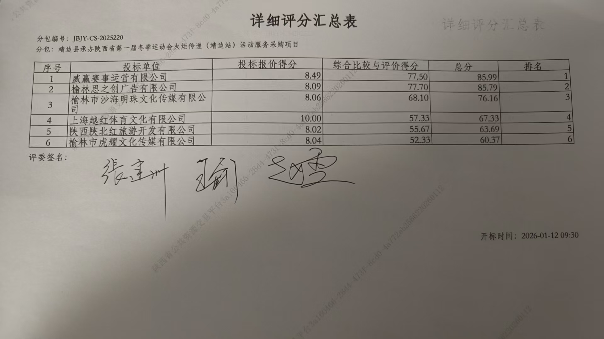 靖边县承办陕西省第一届冬季运动会火炬传递(靖边站)活动服务采购项目(二次)中标(成交)结果公告