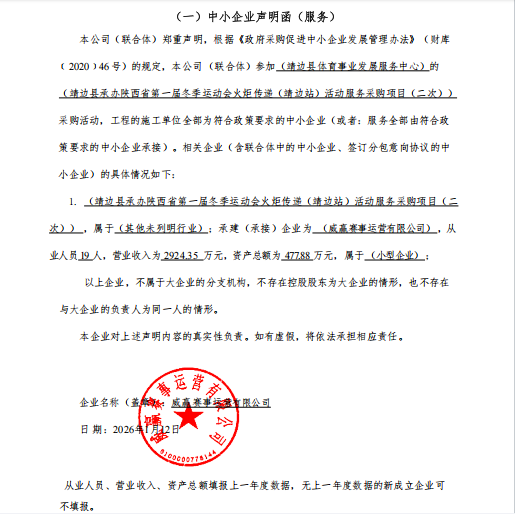 二、项目名称:靖边县承办陕西省第一届冬季运动会火炬传递(靖边站)活动服务采购项目(二次)