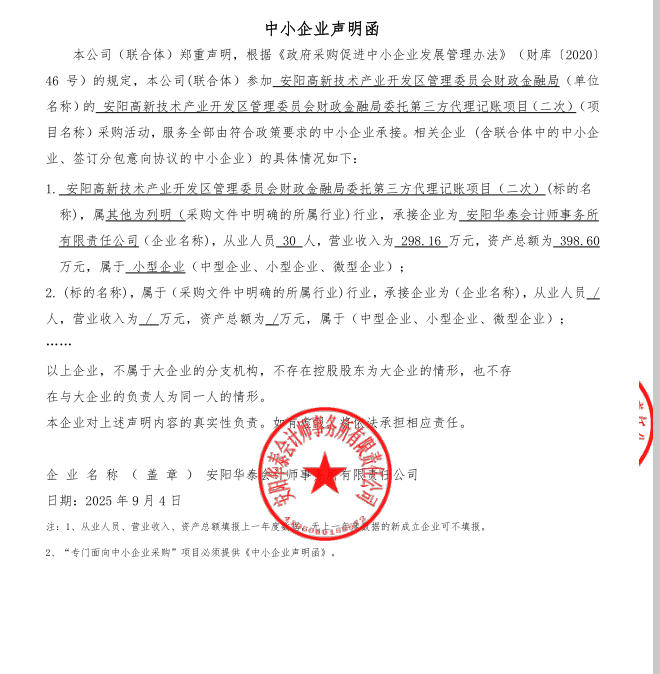 安阳高新技术产业开发区管理委员会财政金融局委托第三方代理记账项目*结果更正公告