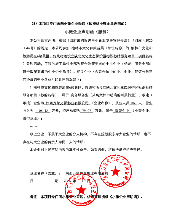 榆林市文化和旅游局*级景区、传统村落设立陕北文化生态保护区标识标牌服务项目中标(成交)结果公告