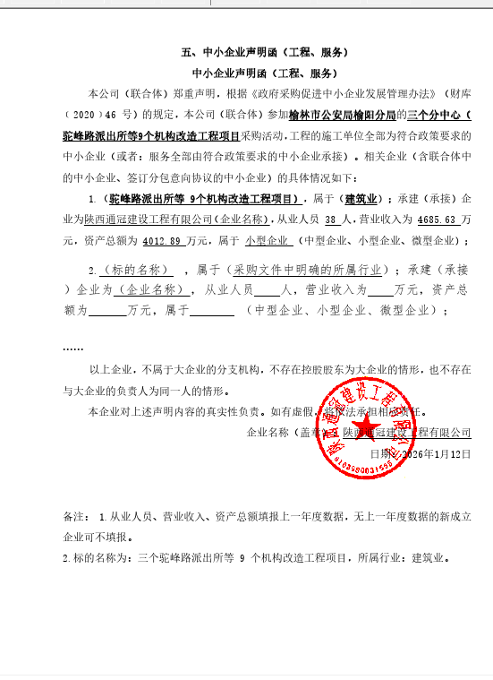 榆林市公安局榆阳分局驼峰路派出所等9个机构改造工程项目中标(成交)结果公告