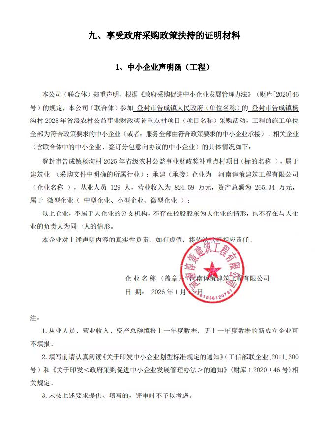登封市告成镇杨沟村2025年省级农村公益事业财政奖补重点村项目成交结果公告
