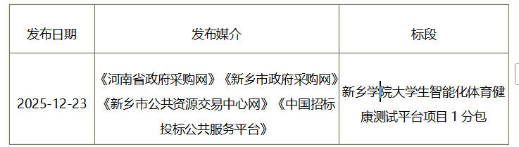 新乡学院大学生智能化体育健康测试平台项目(二次)-废标结果公告