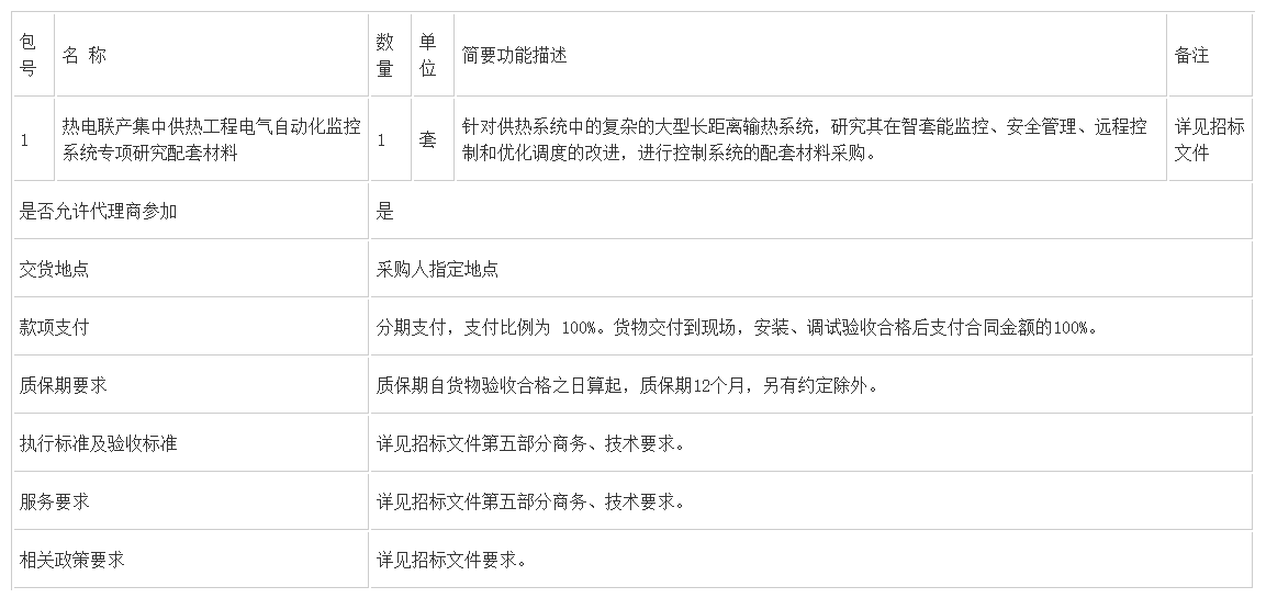 *.项目名称:清华大学山西清洁能源研究院热电联产集中供热工程电气自动化监控系统专项研究配套材料项目