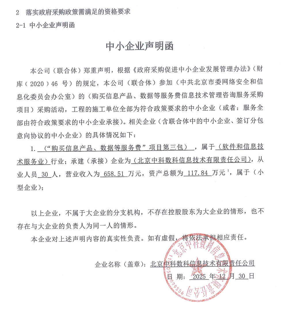 中标成交供应商名称:北京中科数科信息技术有限责任公司