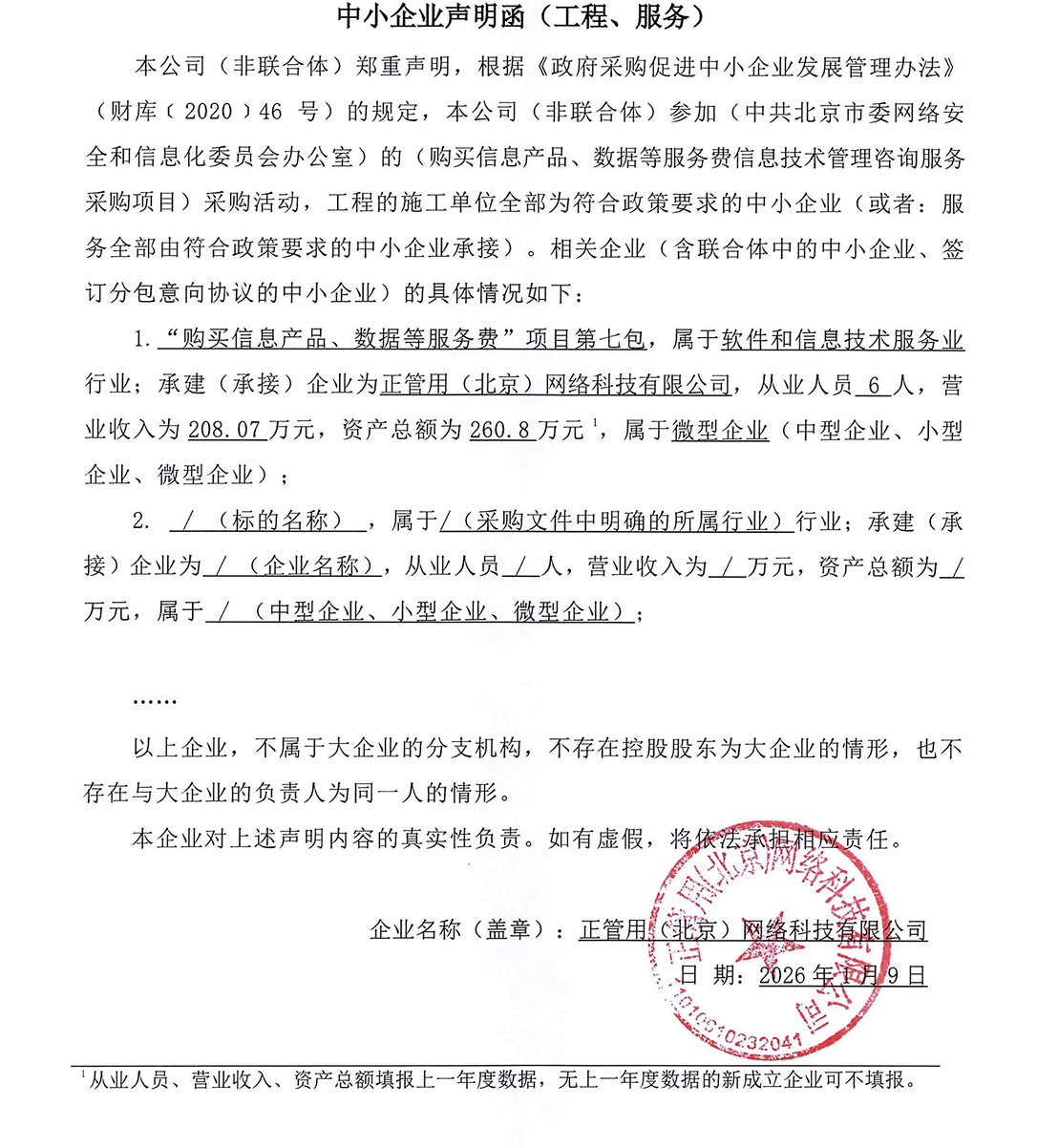 正管用(北京)网络科技有限公司 * **.**万元 **.**万元 具体详见所附竞争性磋商文件