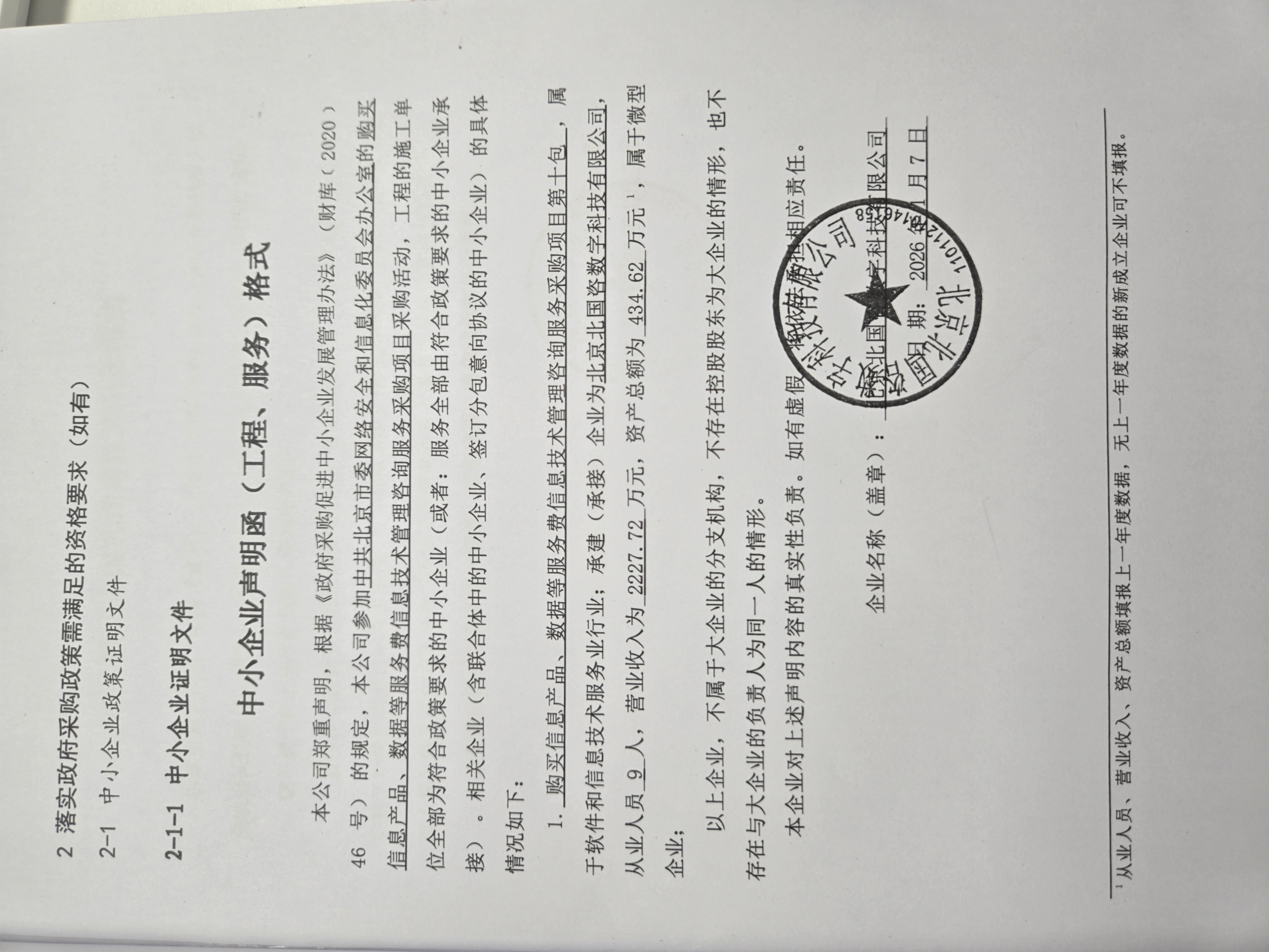 北京北国咨数字科技有限公司 * **.*万元 **.*万元 具体详见所附竞争性磋商文件