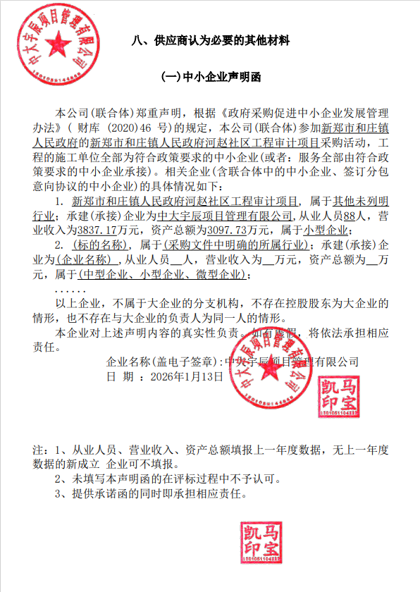 新郑市和庄镇人民政府河赵社区工程审计项目*成交公告