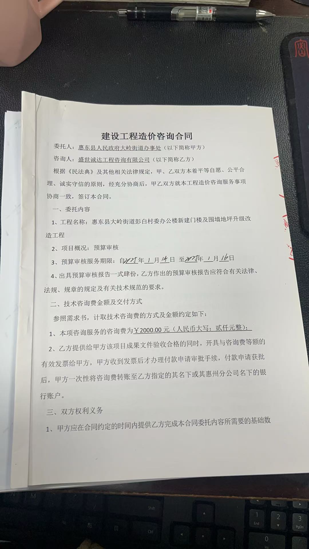 惠东县大岭街道彭白村委办公楼新建门楼及围墙地坪升级改造工程预算审核合同公开