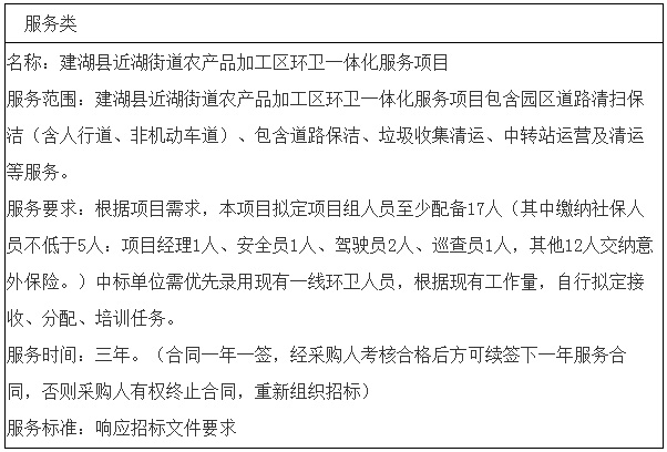 二、项目名称:建湖县近湖街道农产品加工区环卫一体化服务项目