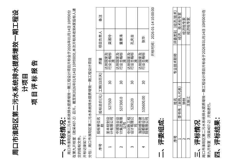 | *、采购项目名称:周口市淮阳区第二污水系统排水提质增效一期工程设计项目 | ||||||