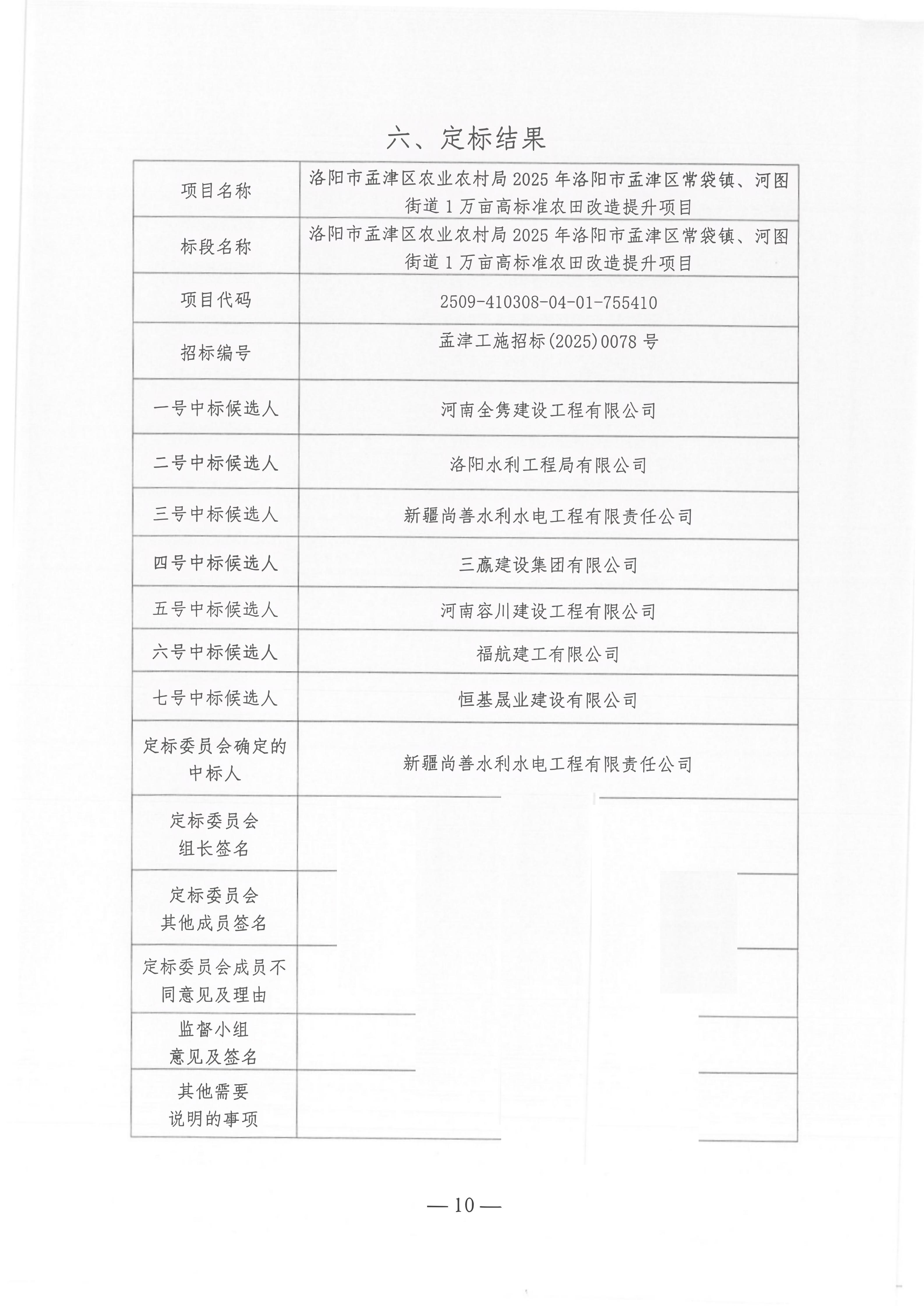洛阳市孟津区农业农村局****年洛阳市孟津区常袋镇、河图街道*万亩高标准农田改造提升项目*中标结果公示