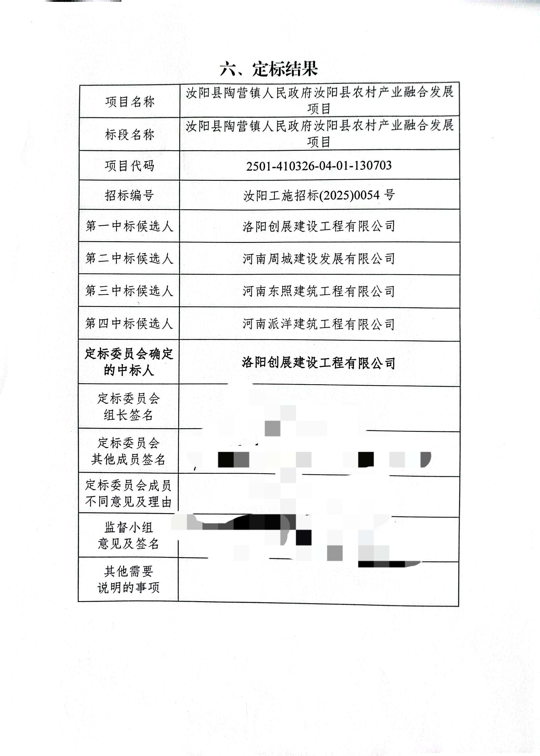 汝阳县陶营镇人民政府汝阳县农村产业融合发展项目*中标公告