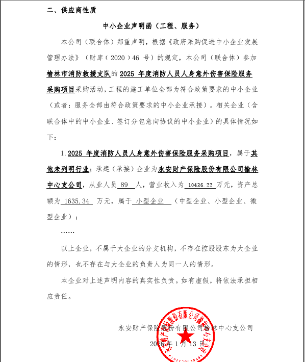 榆林市消防救援支队(榆林市消防救援局)2025年度消防人员人身意外伤害保险服务采购项目中标(成交)结果公告