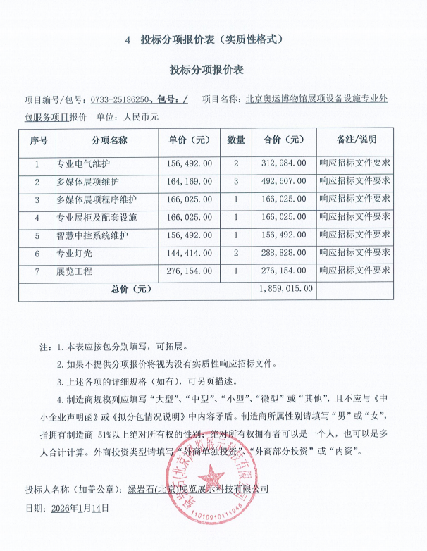 | 绿岩石(北京)展览展示科技有限公司 | * | ***.****万元 | ***.****万元 | 详见招标文件 |