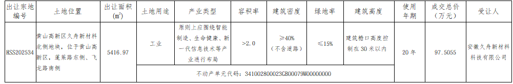 黄山市中心城区国有建设用地使用权挂牌成交结果公示(*************)