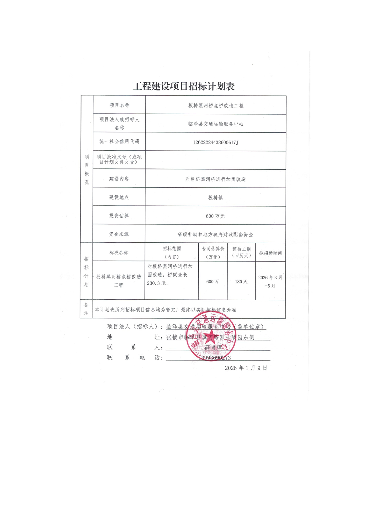 | 招标项目名称 | 板桥黑河桥危桥改造工程 | ||