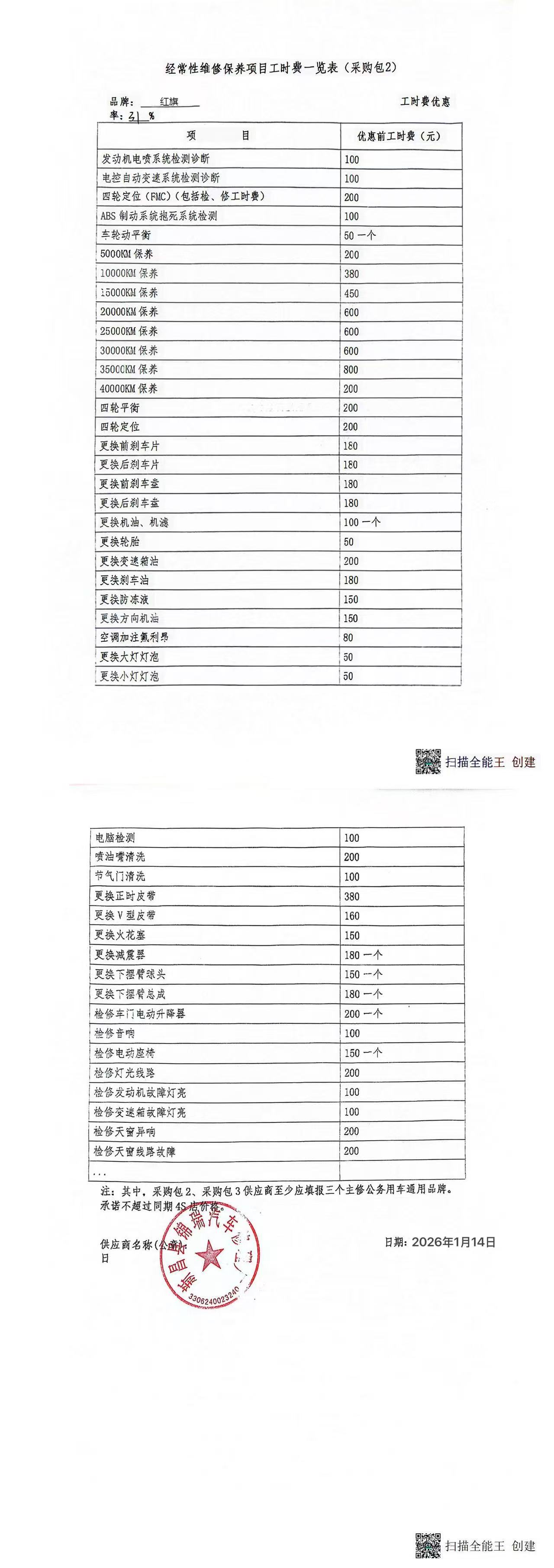 经常性维修保养项目零配件材料费:配件材料费红旗.***