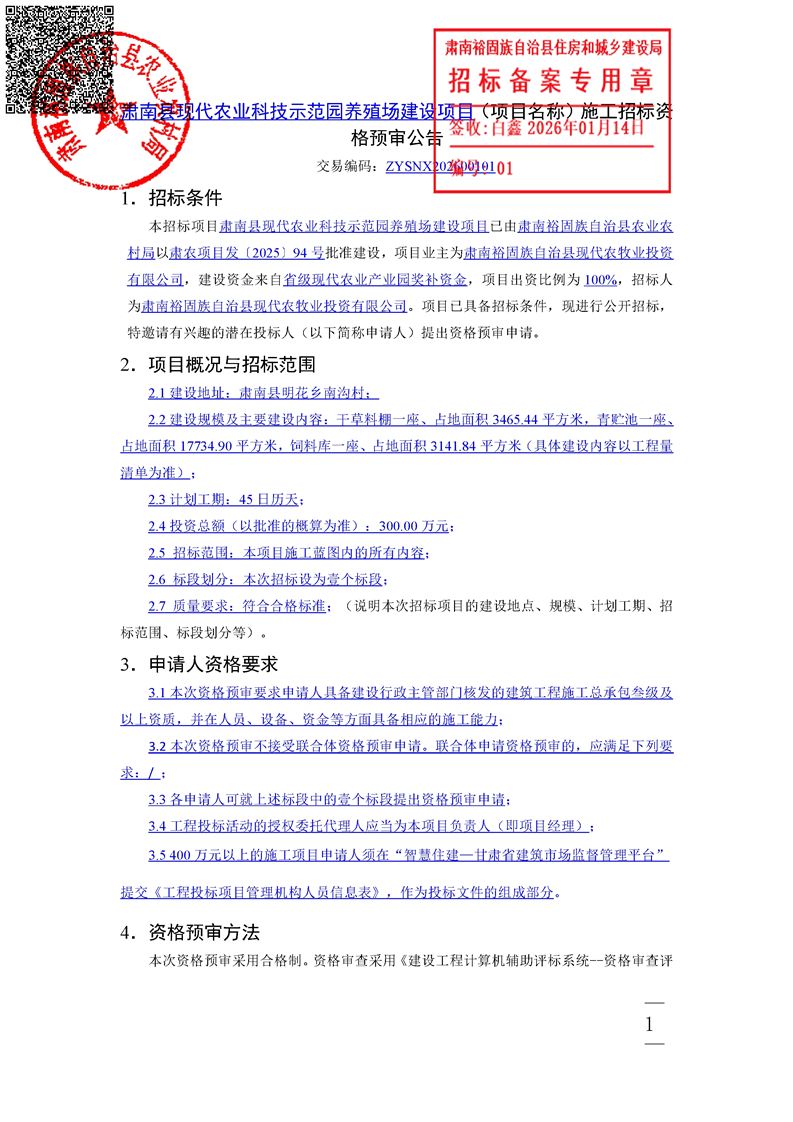 肃南县现代农业科技示范园养殖场建设项目