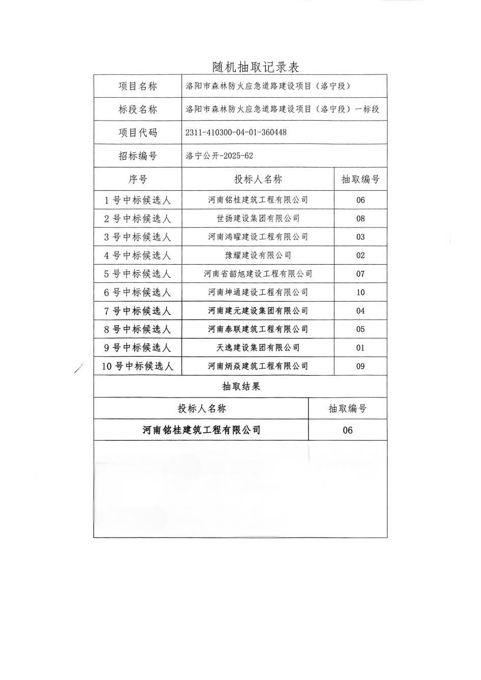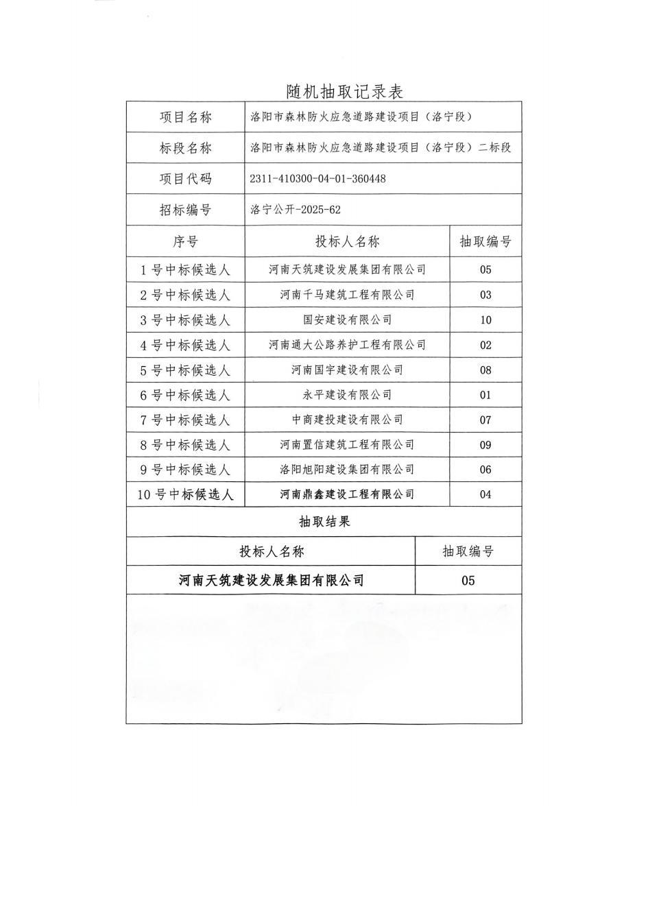 洛阳市森林防火应急道路建设项目(洛宁段)中标结果公告