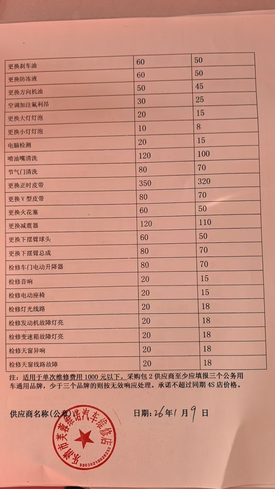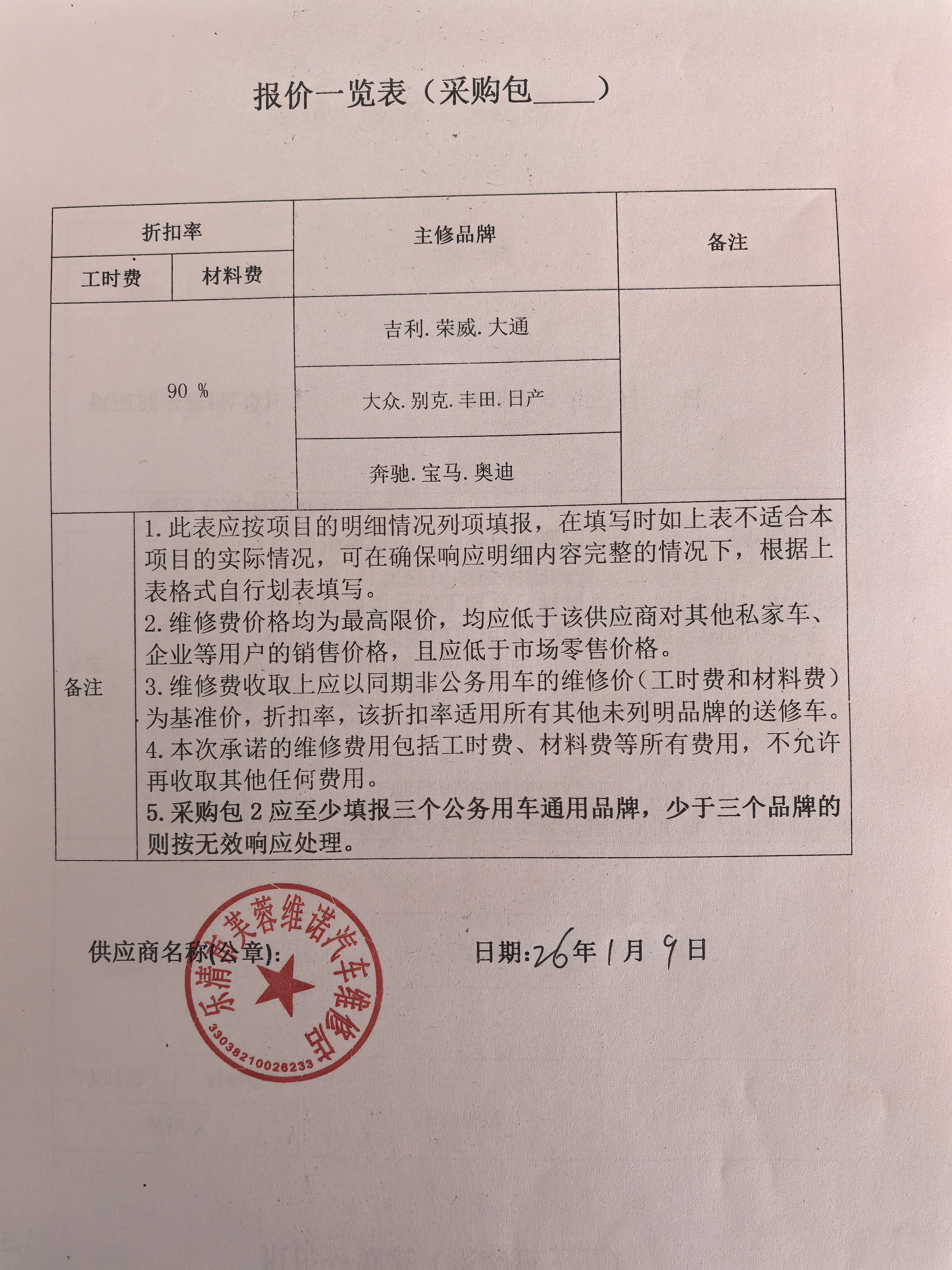 乐清市芙蓉维诺汽车维修店入围2026-2027年度温州市公务用车维修和保养服务开放式框架协议采购项目的结果公告