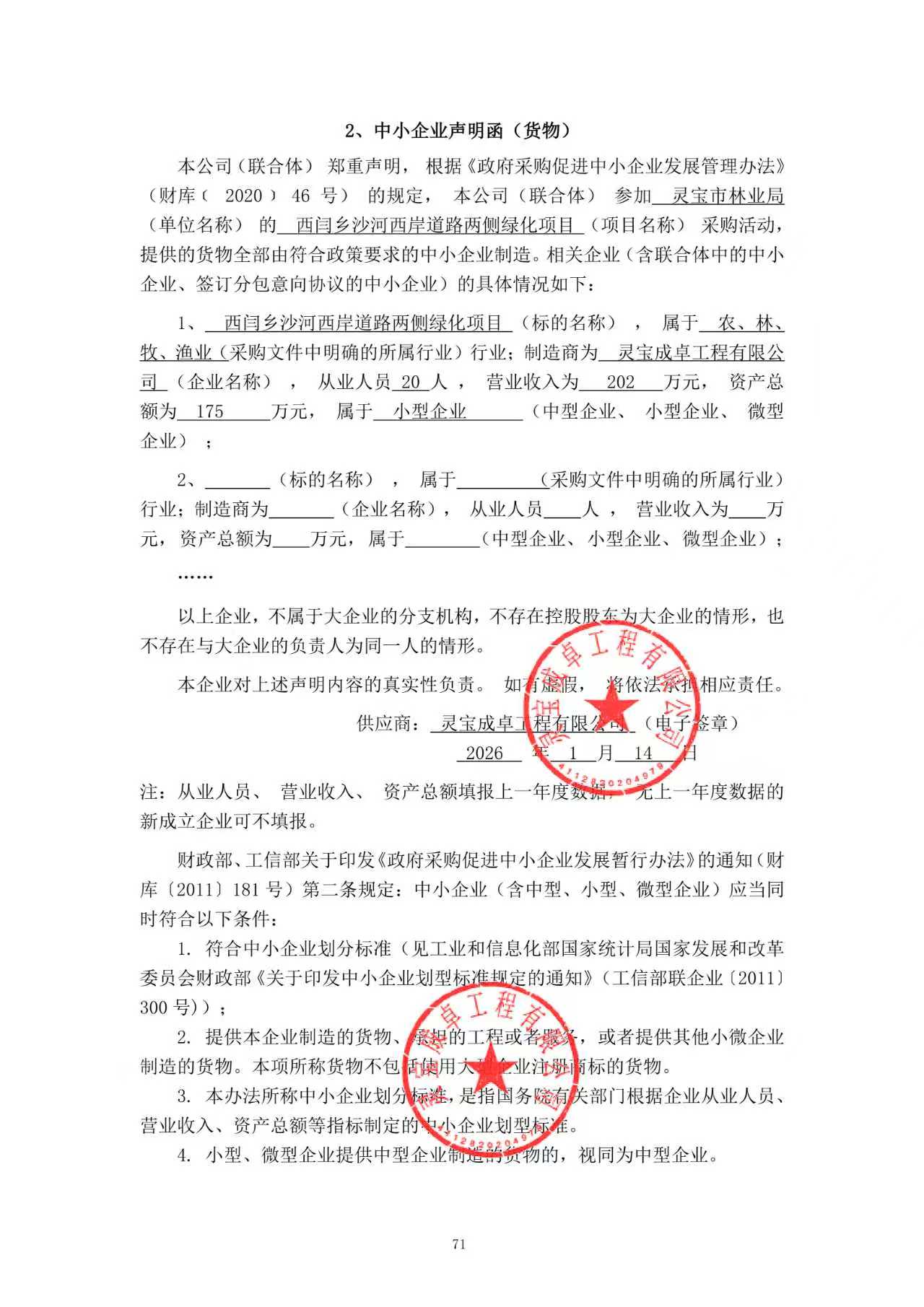 | 供应商名称:灵宝成卓工程有限公司 法定代表人:陈增洋 联系电话:*********** 机构代码证:****************** 各有关当事人对成交公告有异议的,可以在本成交公告发布之日起*个工作日内,以书面形式向采购人或代理机构提出质疑(加盖单位公章且法定代表人签字),由法定代表人或其授权代表携带企业营业执照复印件(加盖公章)及本人身份证(原件)一并提交,采购人或代理机构以质疑函接收确认日期作为受理时间。逾期未提交或未按照要求提交的质疑函将不予受理。 | |||||||||||||||||||||||||||||||